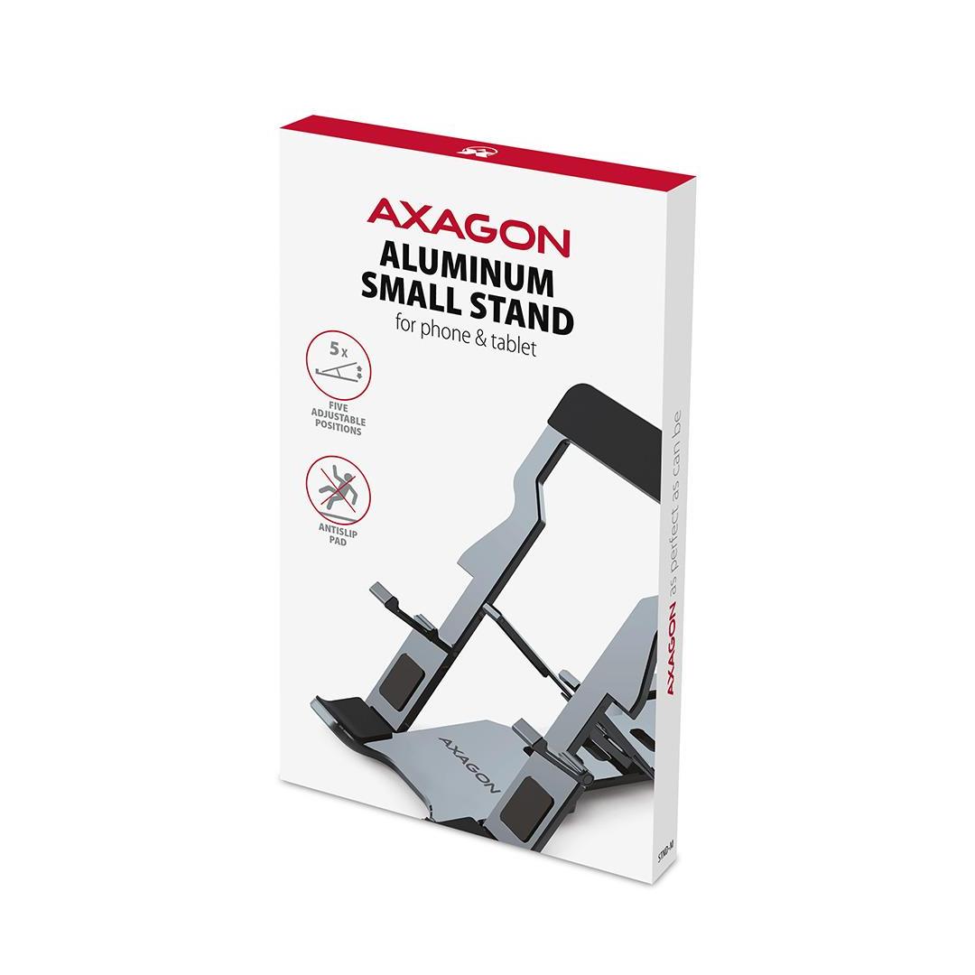 Foldable stand AXAGON STND-M will help you keep your phone or tablet on your eyes. The stand has a universal use for devices from 4" up to 10.5". Adjusting the stand tilt according to your wishes will allow five adjustable positions, both in the horizontal and vertical orientation of the phone / tablet.