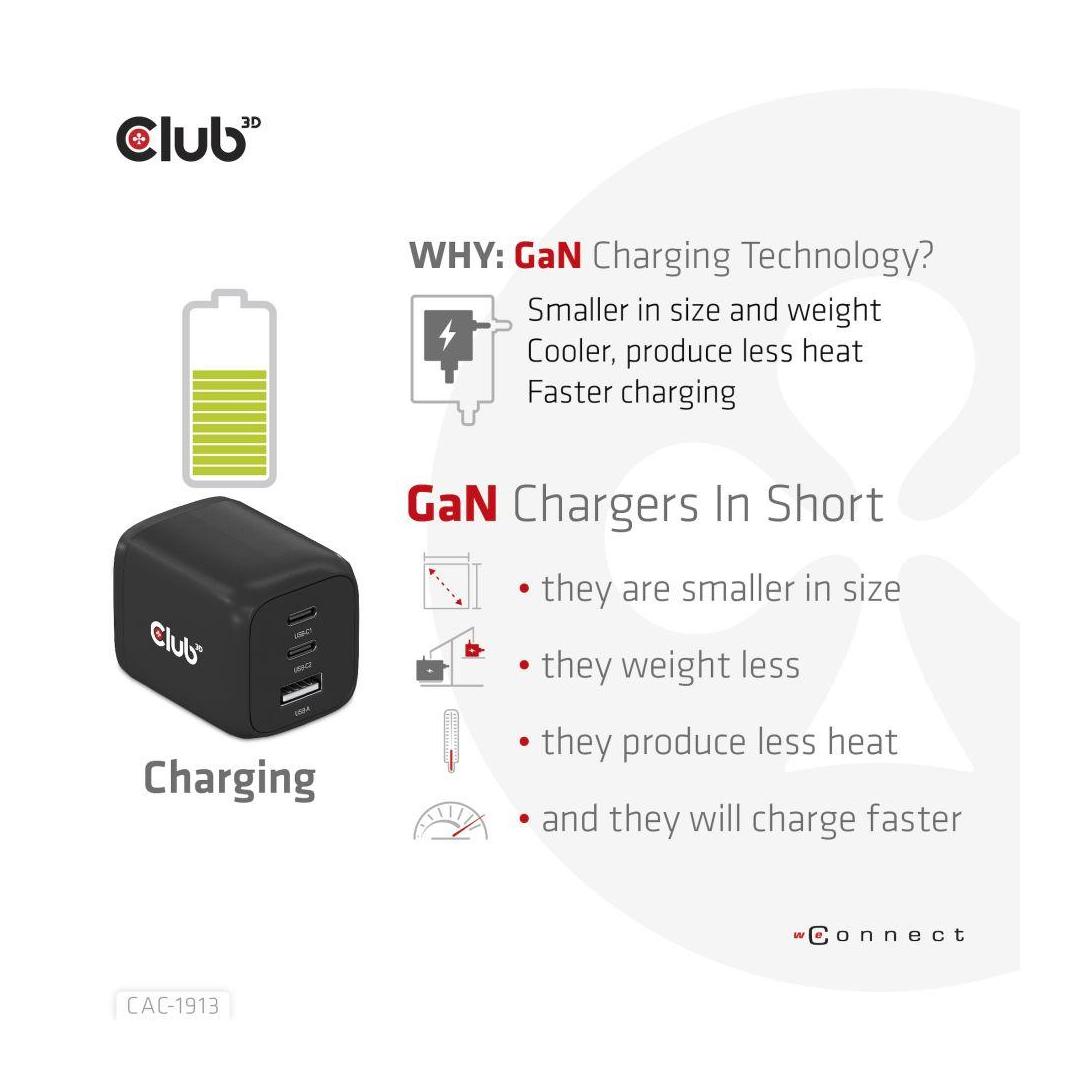 MOBILE CHARGER WALL 3PORT/GAN 65W CAC-1913EU CLUB3D