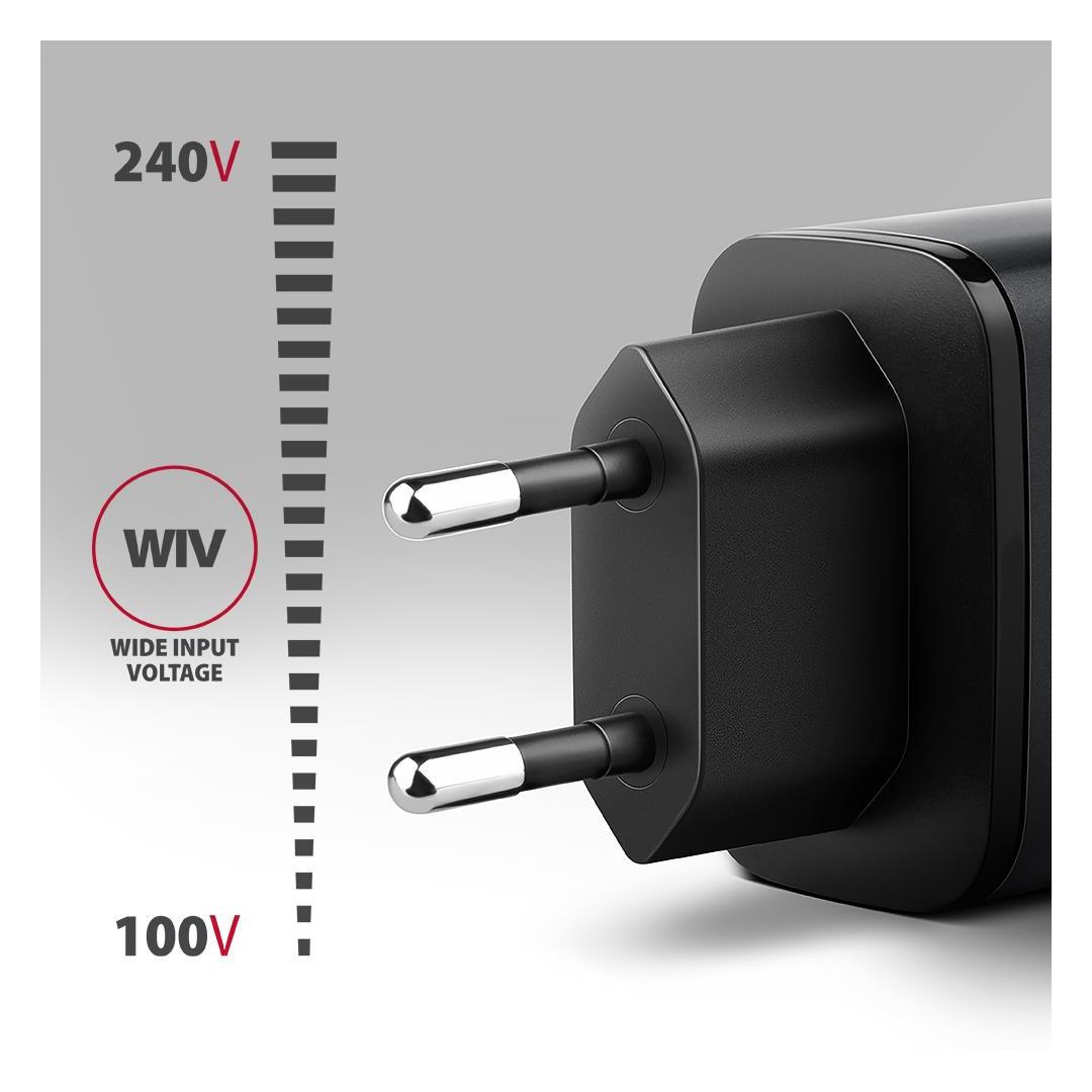 An advanced output protection system of the charging adapter protects connected devices against damage. Charger functions also ensure recognition of the connected device and selection of the optimal charging speed and process.