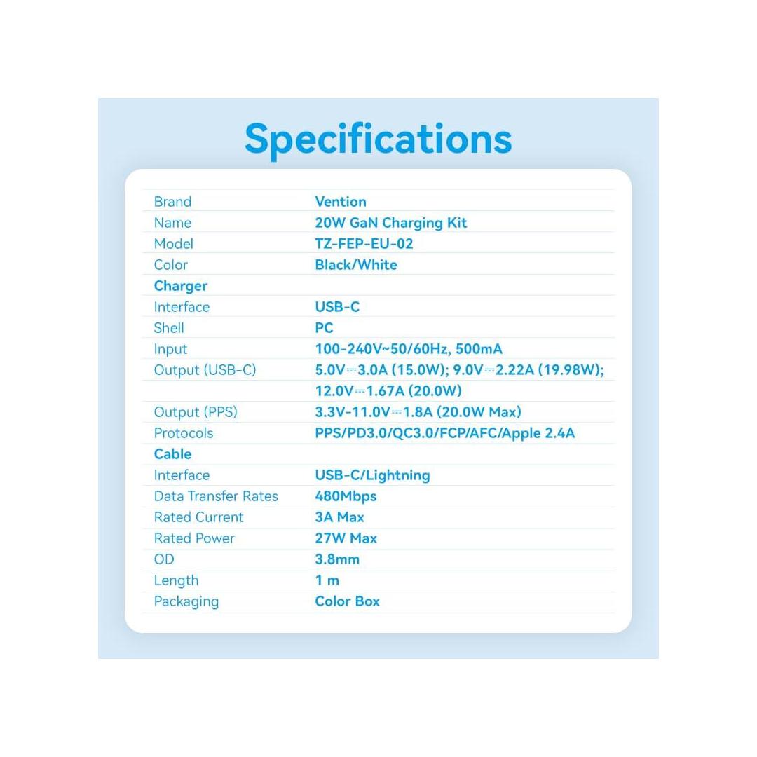 MOBILE CHARGER WALL USB-C/20W TZ-FEPW0-EU-02 VENTION