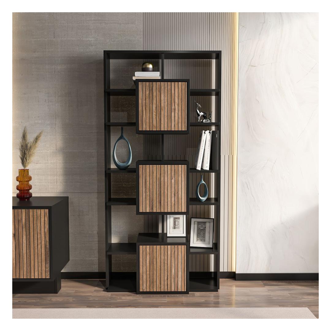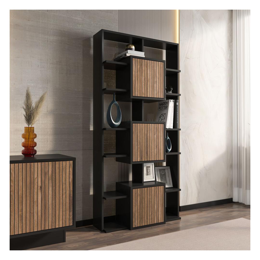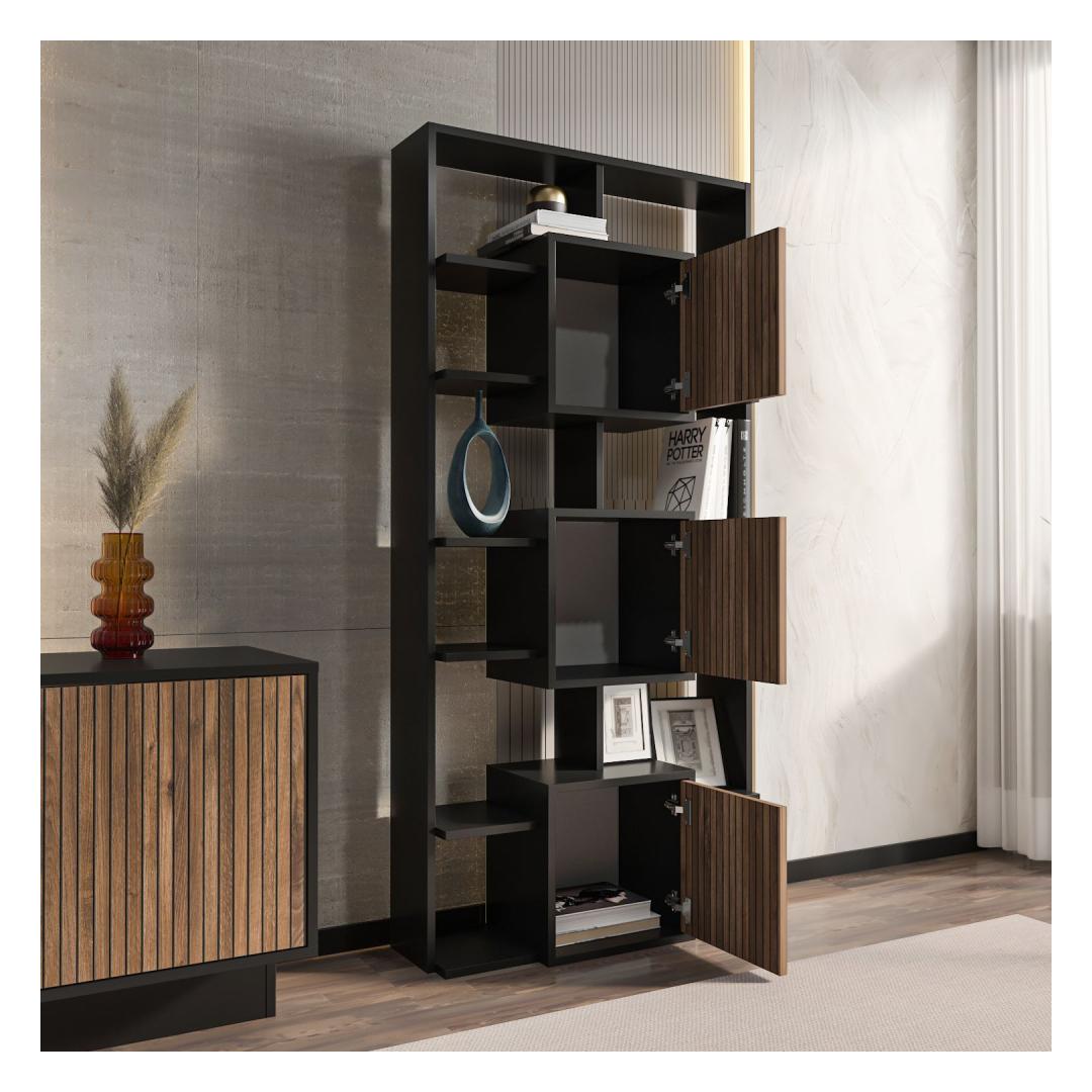 Raamaturiiul Monaco - Black, Light Walnut