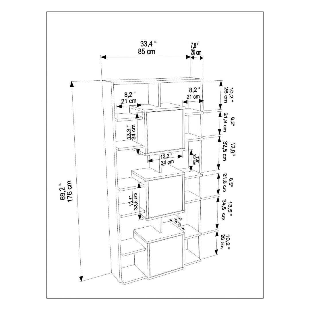 Rohke hoiuruum: Laiusega 85 cm, kõrgusega 176 cm ja sügavusega 20 cm pakub see raamatukapp piisavalt ruumi teie lemmikraamatute, dekoratiivsete esemete ja muu hoidmiseks. Hoidke oma asjad organiseeritud ja kergesti ligipääsetavad selle funktsionaalse mööbliesemega.