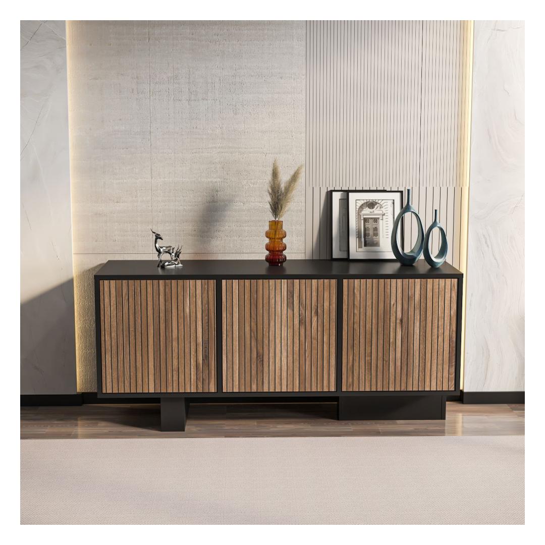 Muuda oma eluruum meie kauni külglaudaga, mis on valmistatud 100% melamiinkattega puitlaastplaadist, et tagada vastupidavus ja stiil. Sujuv disain ja elegantne musta ja heleda pähkli värvikombinatsioon tõstavad koheselt iga ruumi ilmet, lisades sellele natuke rafineeritust ja võlu.