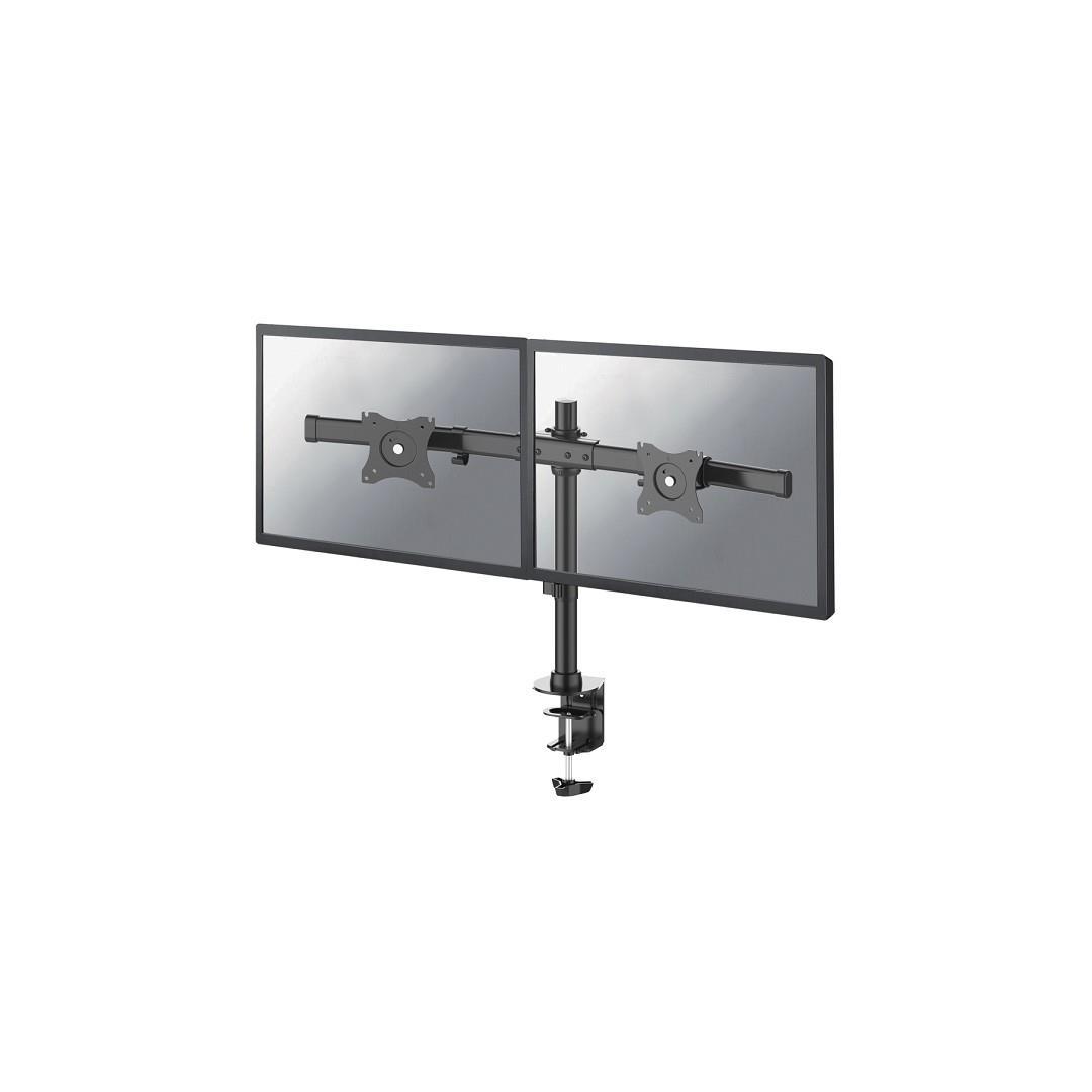 The NewStar desk mount, model FPMA-DCB100DBLACK is a tilt-, swivel and rotatable desk mount for 2 flat screens up to 27”. This dual crossbar mount is a great choice for space saving placement on desks using a desk clamp or desk grommet.