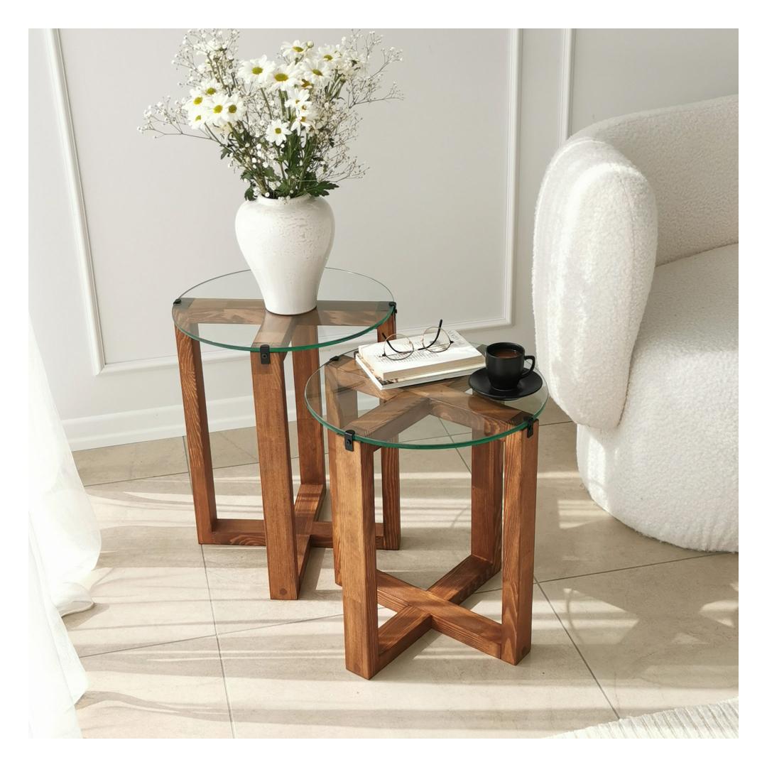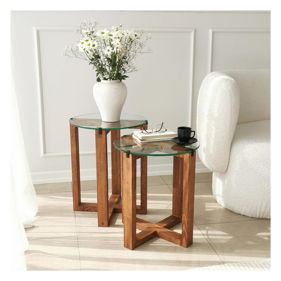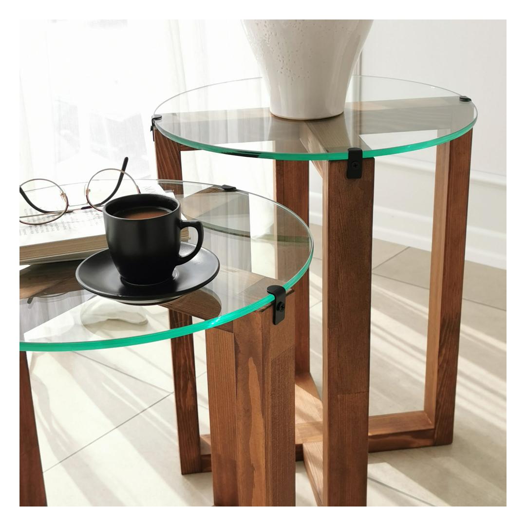 Kas otsite, kuidas lisada oma eluruumi elegantsi ja funktsionaalsust? Siis vaadake meie kaunist pesastatavate laudade komplekti! Need kaks tükki on valmistatud 100% karastatud klaasist, et saavutada sujuv ja kaasaegne välimus, samas kui raam on valmistatud 100% männipuidust, et tagada vastupidavus ja stabiilsus.