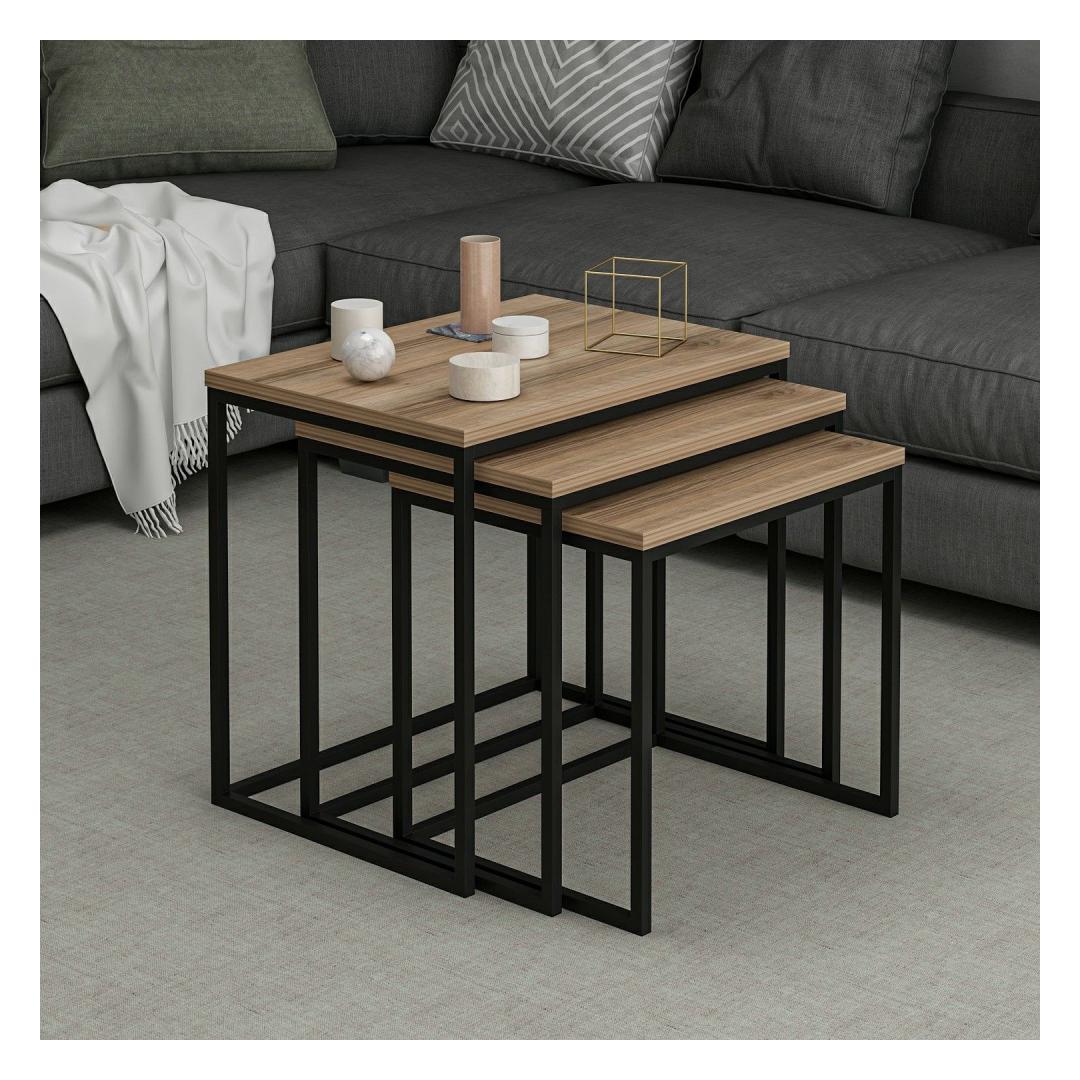 Transformeeri oma eluruum elegantse ja funktsionaalse pesulaudade komplektigaKas olete väsinud segast ja korrastamata eluruumist? ärge otsige enam! meie pesitsuslaudade komplekt on ideaalne lahendus, et tuua oma koju stiili ja organiseeritust. Tõstke oma sisekujundust ajatu elegantsigaNeed ülima täpsusega valmistatud pesaplaadid on loodud lisama igasse ruumi elegantsi. Kerge metallraam täiendab kaunilt rikkalikku pähklipuiduvärvi, luues uimastava visuaalse atraktiivsuse, mis avaldab külalistele muljet.Monitoorne ja praktiline disainKomplekti kuulub kolm erineva suurusega pesitsuslauda, mis võimaldavad neid paigutada erinevatesse konfiguratsioonidesse vastavalt teie vajadustele. Kas kasutate neid küljelauana, kohvilaudadena või isegi eraldi tükkidena erinevates ruumides, need lauad pakuvad lõputuid võimalusi teie eluruumi kaunistamiseks. Kindel ja usaldusväärne konstruktsioonMeie pesaplaadid on valmistatud 100% melamiiniga kaetud puitlaastplaadist, mis tagab pikaajalise vastupidavuse ning vastupidavuse kriimustuste ja plekkide suhtes. 18 mm paksus lisab nende tugevust, mistõttu nad on võimelised vastu pidama igapäevasele kasutamisele ja pakuvad teile aastatepikkust usaldusväärset teenindust. Tehnilised üksikasjad:Materjal: 100% melamiiniga kaetud puitlaastplaatPaksus: 18mmRaam: MetallSuurus (1:) Laius: 55cm, kõrgus: 50cm, sügavus: 40cm.Suurus (2:) Laius: 50cm, kõrgus: 46cm, sügavus: 38cm.Suurus (3. tükk): Laius: 45cm, kõrgus: 42cm, sügavus: 36cm.Värv: PähklipuuÄrge jätke kasutamata võimalust muuta oma eluruum stiilseks ja korrastatud pelgupaigaks. Tellige meie pesapinkide komplekt juba täna ja kogege funktsionaalsuse ja elegantsi täiuslikku kombinatsiooni! Värv: Walnut