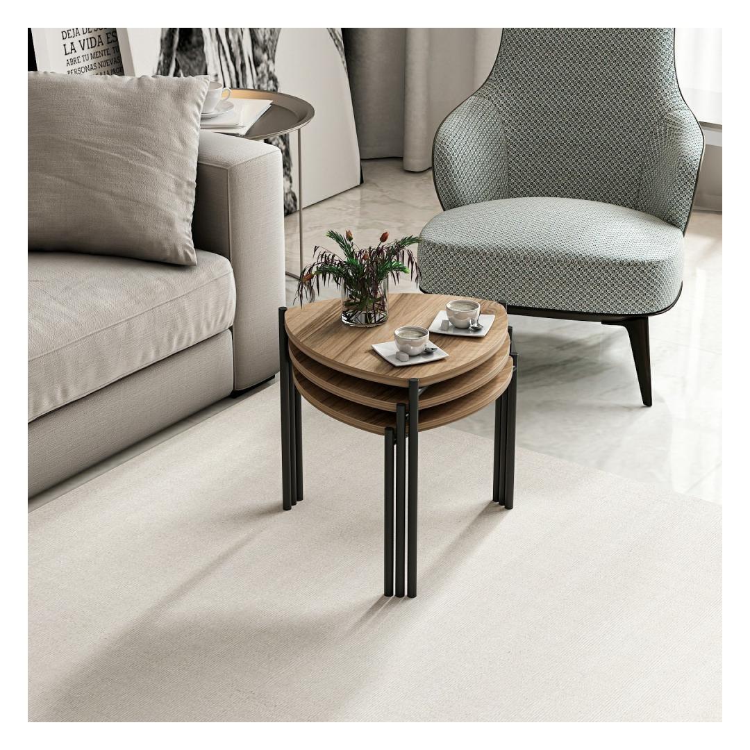 Loo stiilne ja funktsionaalne elutuba meie pesitsuslaudadegaKas soovite muuta oma eluruumi stiilseks ja funktsionaalseks? vaadake meie pesaplaate! need kaunilt disainitud lauad on ideaalne täiendus igasse koju, pakkudes nii stiili kui ka praktilisust. Tõstke oma kodu sisekujundust elegantsi ja elegantsusegaMeie pesaplaadid on valmistatud 100% melamiiniga kaetud puitlaastplaadist, mis on valmistatud ülima täpsuse ja tähelepanuga detailidele. Pähklipuu värv lisab igasse ruumi elegantsust ja elegantsust, mistõttu on see ideaalne valik neile, kes hindavad peent käsitööd. Versatiivne ja ruumi säästev disainKomplekti kuulub kolm erineva suurusega pesitsuslauda, mis võimaldab neid paigutada mitmetes konfiguratsioonides vastavalt teie vajadustele. Kui neid ei kasutata, mahuvad väiksemad lauad kenasti suurema laua alla, säästes väärtuslikku põrandapinda. See mitmekülgne disain sobib ideaalselt väikestesse korteritesse või ruumidesse, kus ruumi on vähe. Kindel konstruktsioon pikaajaliseks kasutamiseksMeie pesitsuslaudadel on tugev metallraam, mis tagab suurepärase stabiilsuse ja vastupidavuse. Melamiiniga kaetud puitlaastplaadi 18 mm paksus tagab, et need lauad peavad vastu igapäevasele kasutamisele, kaotamata seejuures oma võlu. Tehnilised üksikasjad:Materjal: materjal: 100% melamiiniga kaetud puitlaastplaatPaksus: 18mmMetallist raam lisab stabiilsustSuurus (1. tükk): Laius: 45 cm, kõrgus: 45 cm, sügavus: 45 cm.Suurus (2. tükk): Laius: 45 cm, kõrgus: 40 cm, sügavus: 45 cm.Suurus (3. tükk): Laius: 45 cm, kõrgus: 35 cm, sügavus: 45 cm.Värv: PähklipuuÄrge jätke kasutamata võimalust kaunistada oma elamispinda meie pesulaudadega. Tellige kohe ja kogege stiili, funktsionaalsuse ja vastupidavuse täiuslikku segu! Värv: Walnut