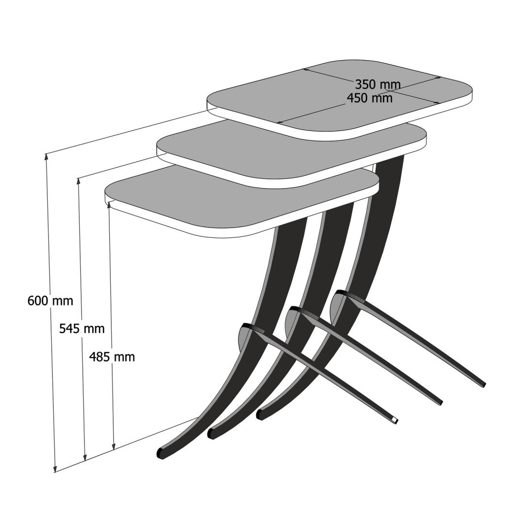 Meie pesitsuslauakomplekt sisaldab kolme erineva suurusega osa, mis võimaldab teil neid hõlpsasti kokku pesitseda või kasutada neid eraldi. Suurema laua laius on 35 cm, kõrgus 45 cm ja sügavus 60 cm, mis annab teie asjadele piisavalt pinda. Keskmise ja väiksema suurusega lauad pakuvad täiendavaid ruumi kokkuhoiu võimalusi, nende laius on 35 cm ja sügavus 54,5 cm ja 48 cm. 5cm.