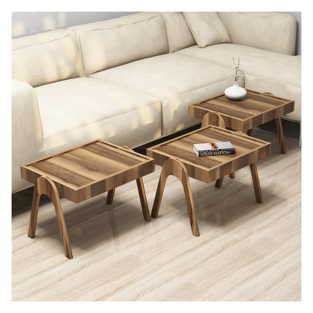 Tutvustame meie uimastavat pesulaudade komplekti, mis on kohustuslik täiendus igasse moodsasse koju. Oma soliidse värvi ja kaasaegse disainiga teevad need lauad kindlasti igas ruumis silma paista. Need lauad on valmistatud 100% melamiiniga kaetud puitlaastplaadist, mis ei ole mitte ainult stiilsed, vaid ka vastupidavad, tagades, et need peavad vastu. Tõstke oma ruumiLooge stiilne ja funktsionaalne ruum meie pesitsuslaudade komplektiga. Kui vajate lisapinda külaliste vastuvõtmiseks või mugavat kohta hommikukohvi jaoks, siis need lauad on teile sobivad. Nende ainulaadne pesitsusdisain võimaldab hõlpsasti hoiustada neid, kui neid ei kasutata, mistõttu sobivad need ideaalselt väiksematesse ruumidesse. Vabastage oma loovusLaske oma fantaasial vabalt tegutseda nende mitmekülgsete laudade abil. Kasutage neid ühtse komplektina või eraldage need, et luua oma kodus mitu fookuspunkti. Pähklipuu värv lisab igasse ruumi soojust ja elegantsust, sulandudes vaevata teie olemasoleva sisustusega. Kvaliteetne käsitööOleme uhked, et kasutame oma toodete valmistamiseks ainult parimaid materjale. 18 mm paksune melamiiniga kaetud puitlaastplaat tagab tugeva ja usaldusväärse konstruktsiooni. Võite olla kindel, et need lauad on ehitatud nii, et nad peavad vastu igapäevasele kasutamisele ja jäävad teie kodu esemeks pikkadeks aastateks. Tehnilised üksikasjad:Materjal: materjal: 100% melamiiniga kaetud puitlaastplaatPaksus: 18mmLaius: 53. 6cmKõrgus: 64cmSügavus: 40cm (3 tükki)Värv: PähkelpuuElustage oma eluruumi meie pesitsuslaua komplektiga. Tellige kohe ja kogege stiili ja funktsionaalsuse täiuslikku segu oma kodus. Värv: Walnut