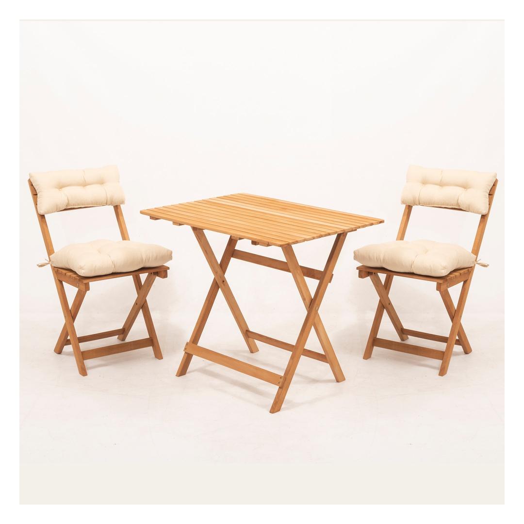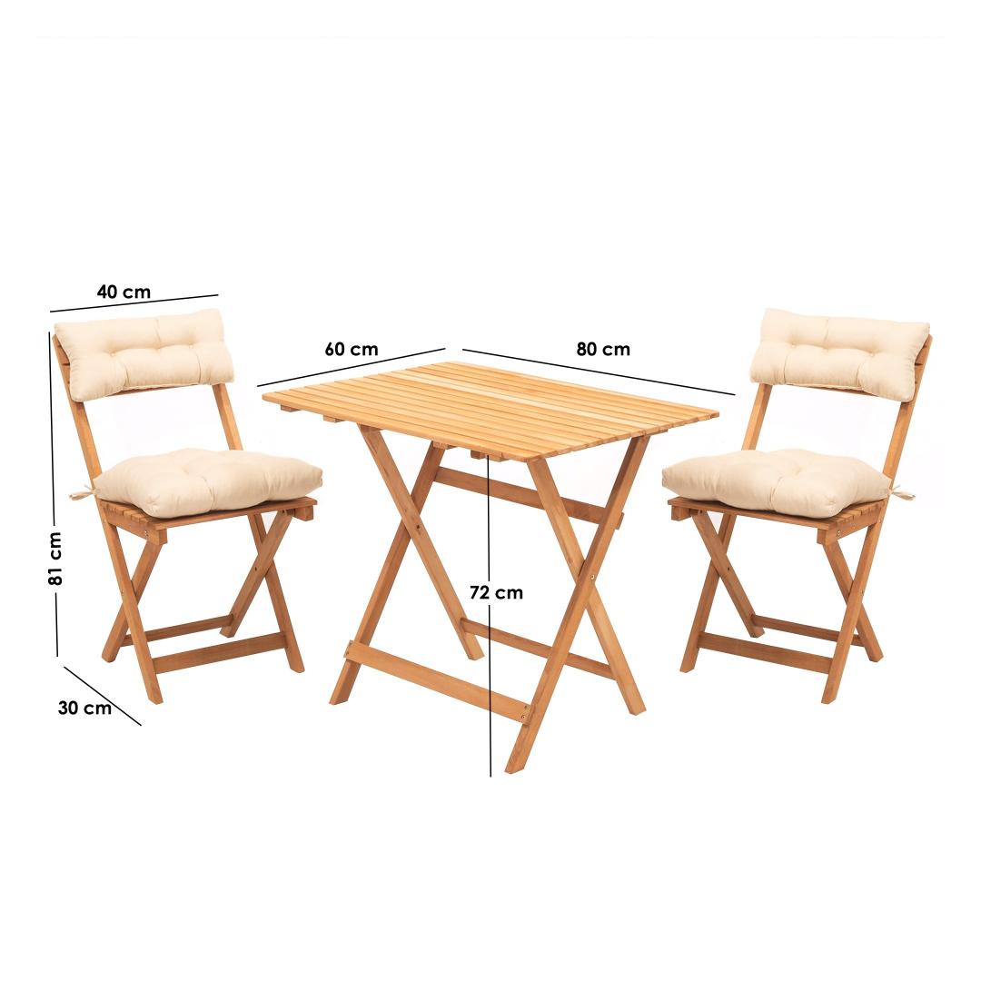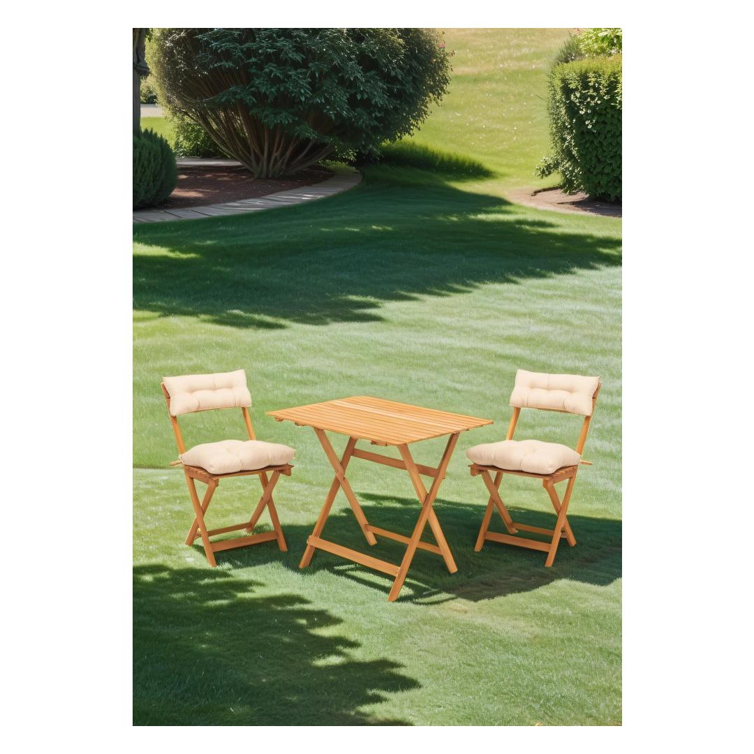 See 100% pöögipuidust valmistatud komplekt õhkab ajatut elegantsi, mis tõstab iga aia esteetilisust. Puidu naturaalne teravus lisab elegantsi, samas kui kreemjad aktsendid toovad modernsust.