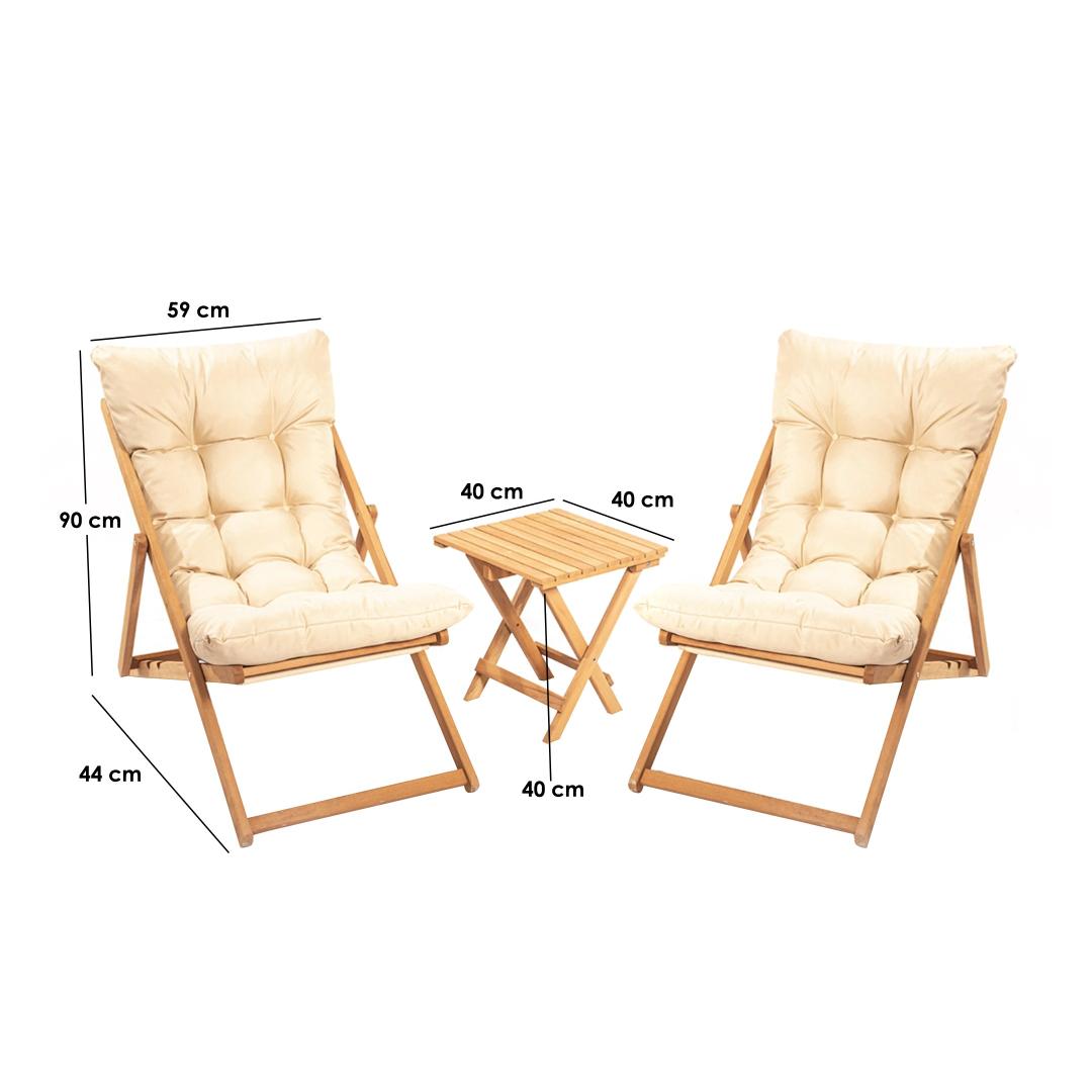Lõõgastuge stiilselt ja mugavalt. Laua laius, kõrgus ja sügavus on 40 cm, pakkudes piisavalt ruumi jookide, suupistete või lummava keskkoha jaoks. Toolid, mille laius on 59 cm, kõrgus 90 cm ja sügavus 44 cm, pakuvad ergonoomilist tuge ja mõnusat kohta, kus saab lõõgastuda ja nautida aia vaikust.