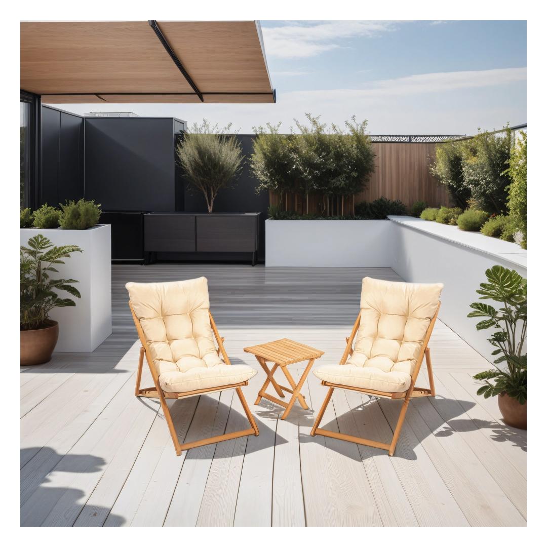 Muutke oma õueala rahulikuks ootelinnaks meie suurepärase aialaua ja toolide komplektiga. See 3-osaline komplekt on valmistatud ülima hoole ja tähelepanuga detailidele, et tõsta teie aed elegantsi ja mugavuse uuele tasemele.