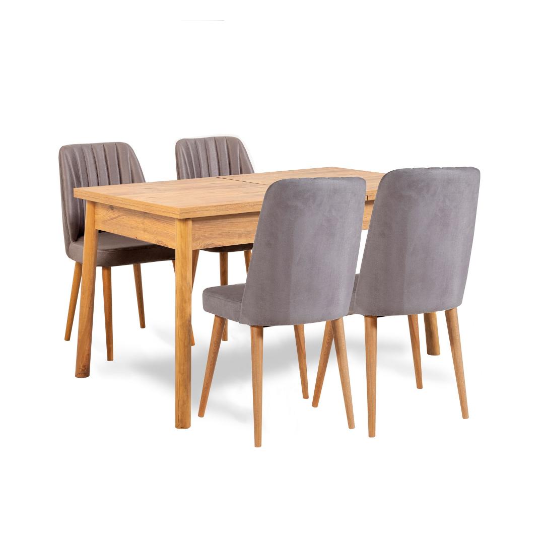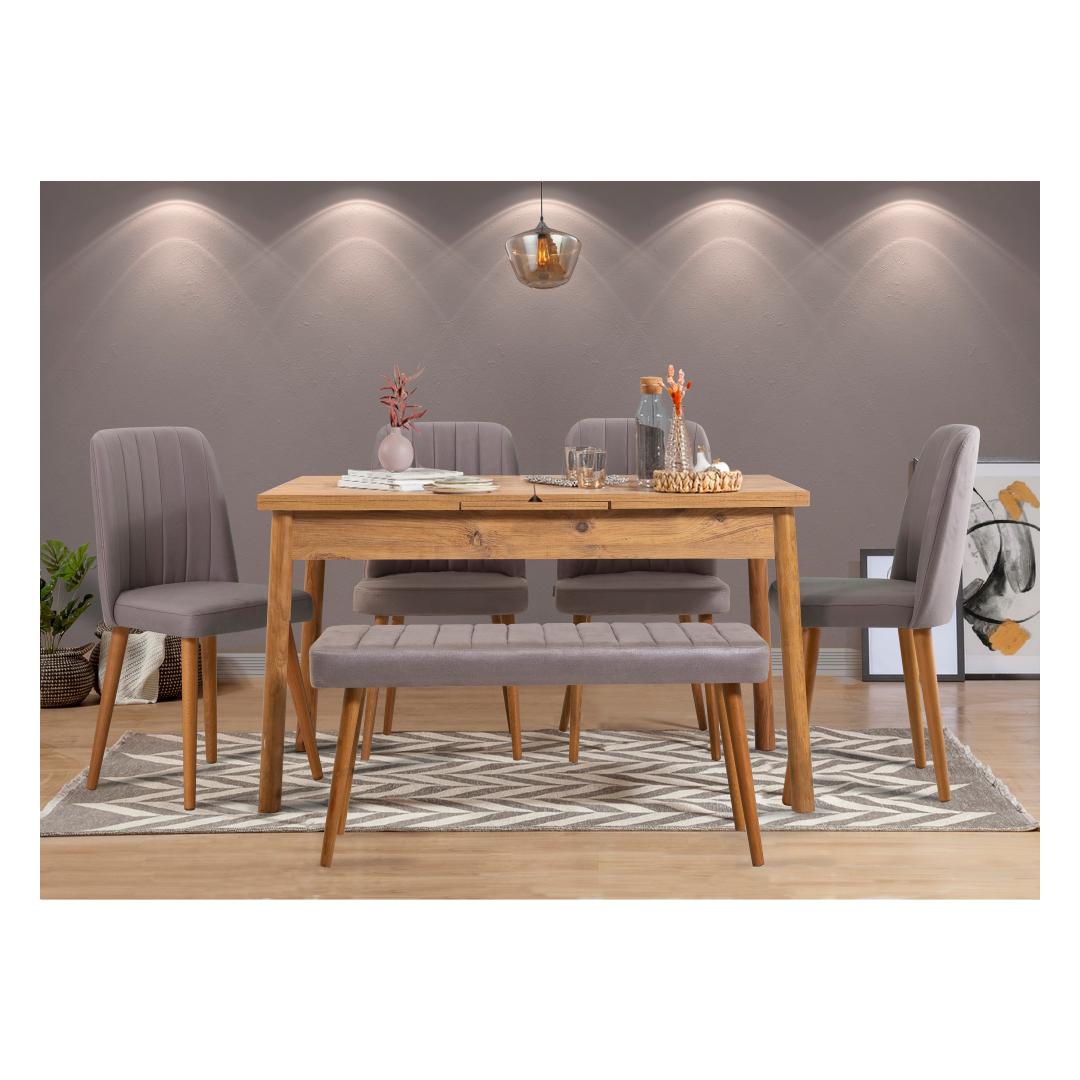 Oma moodsa ja uudse disainiga lisab see söögikomplekt vaevata elegantsi igasse ruumi. Atlandi männi ja halli värvi kombinatsioon loob uimastava visuaalse kontrasti, mis jätab teie külalised imestama. Olenemata sellest, kas eelistate rustikaalset, skandinaavia või maalähedast esteetikat, on see komplekt piisavalt mitmekülgne, et täiendada mis tahes interjööri stiili.