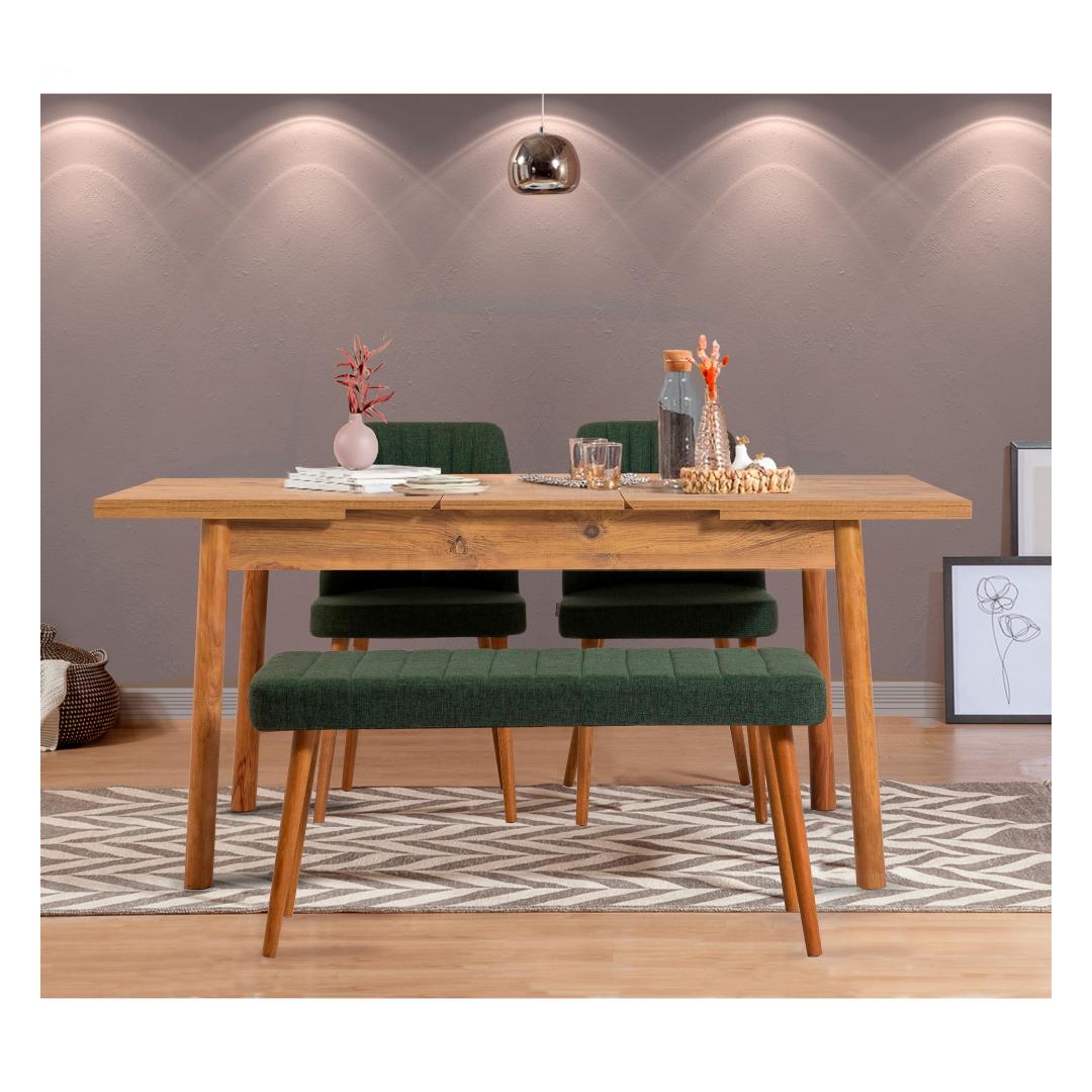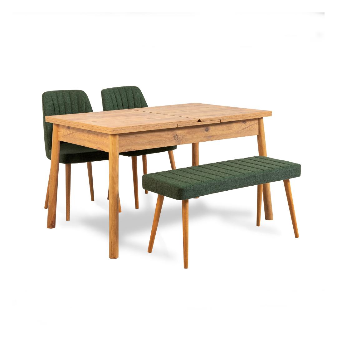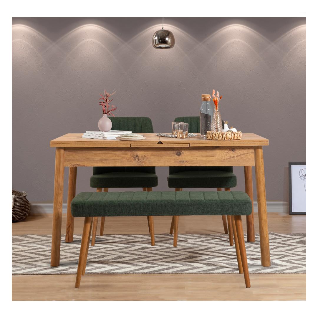 See modern-uuenduslik kontseptsiooniga söögikomplekt ühendab vaevata rustikaalseid, skandinaavia ja maalähedasi elemente. Atlandi männi ja rohelise värvikombinatsioon lisab teie söögikohale värskendava ja elava puudutuse, luues sooja ja kutsuva atmosfääri.