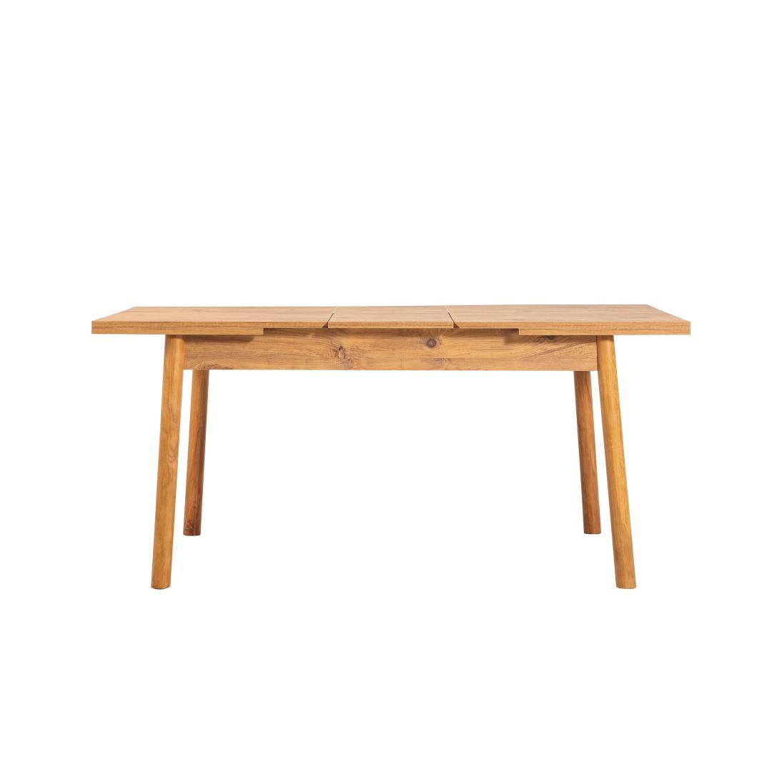 Kogege selle suurepärase söögitoa komplektiga stiili ja funktsionaalsuse täiuslikku segu. See komplekt on valmistatud 100% melamiiniga kaetud puitlaastplaadist, mis on loodud kestma ja vastu pidama aja katsumusele. 18 mm paksus tagab vastupidavuse ja stabiilsuse, samal ajal kui puidust jalad lisavad teie söögisaali elegantsi.