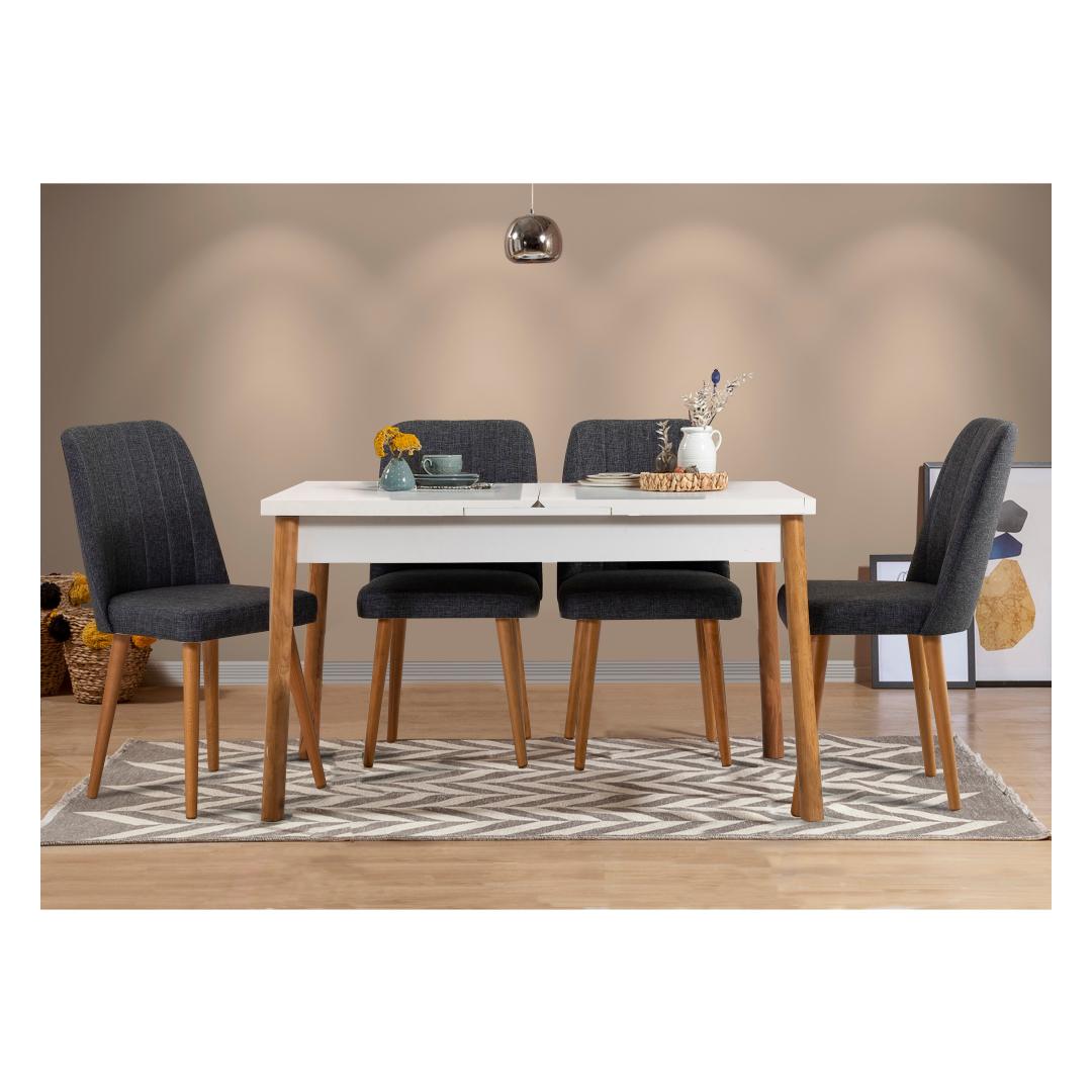 Kogege meie pikendatava söögilaua ja toolide komplekti ilu ja funktsionaalsust. See komplekt on valmistatud armastuse ja tähelepanelikkusega, et suurendada teie söögikogemust ja luua püsivaid mälestusi koos oma lähedastega.