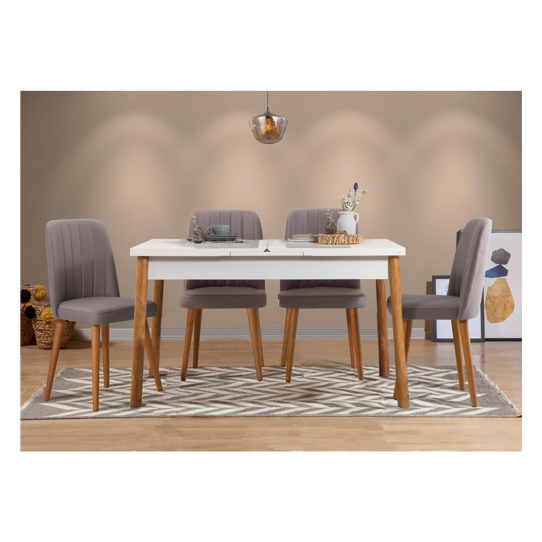 Võtke omaks skandinaavia disaini ajatu võlu meie pikendatava söögilaua ja toolide komplektiga. Puhtad jooned, minimalistlik esteetika ja naturaalne värvipalett loovad harmoonilise atmosfääri, mis on nii kutsuv kui ka rahustav.