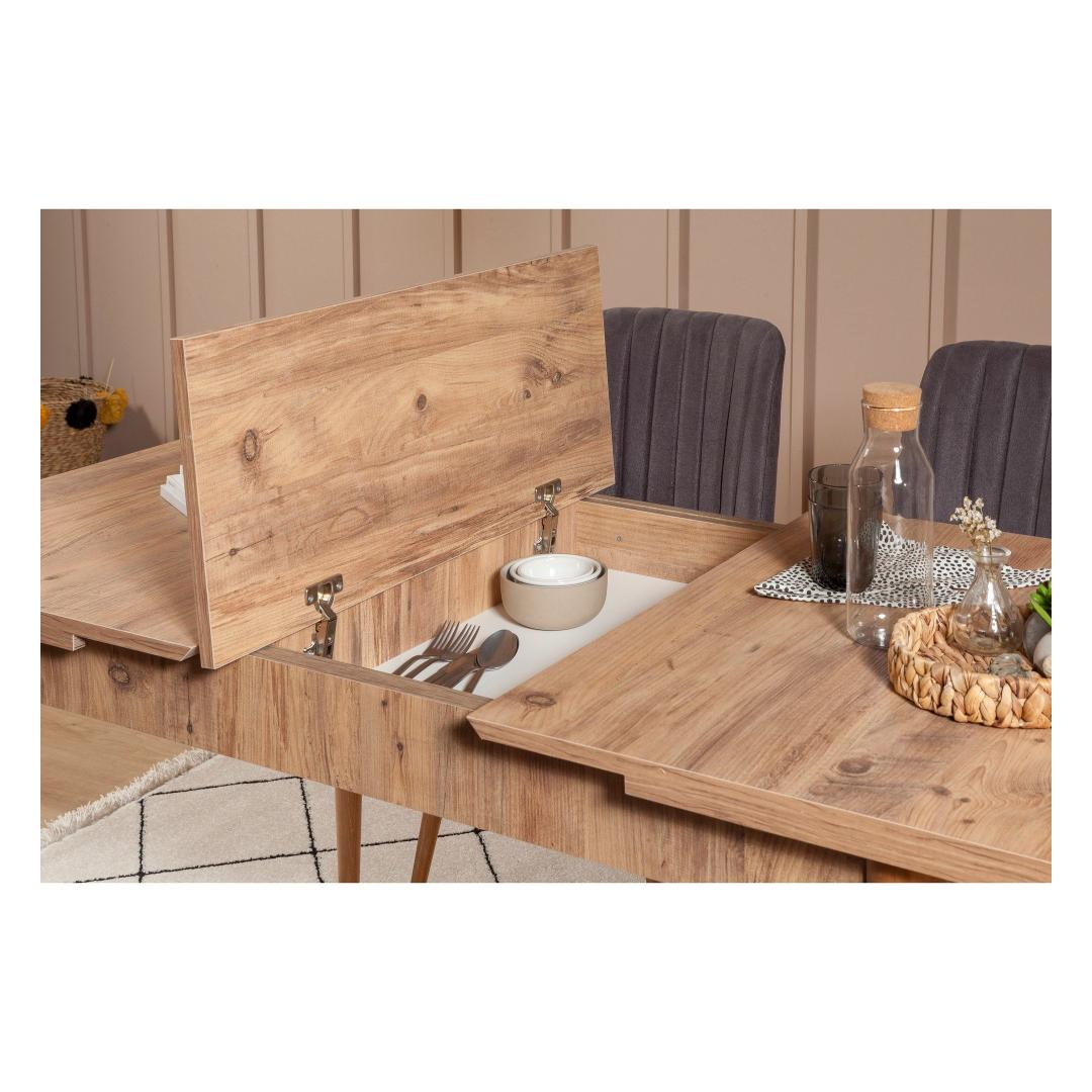 Hellitage meie pikendatava söögilaua ja toolide komplektiga ülimat söögikogemust. Tellige kohe ja looge soe ja kutsuv atmosfäär, mis jätab külalistele püsiva mulje.