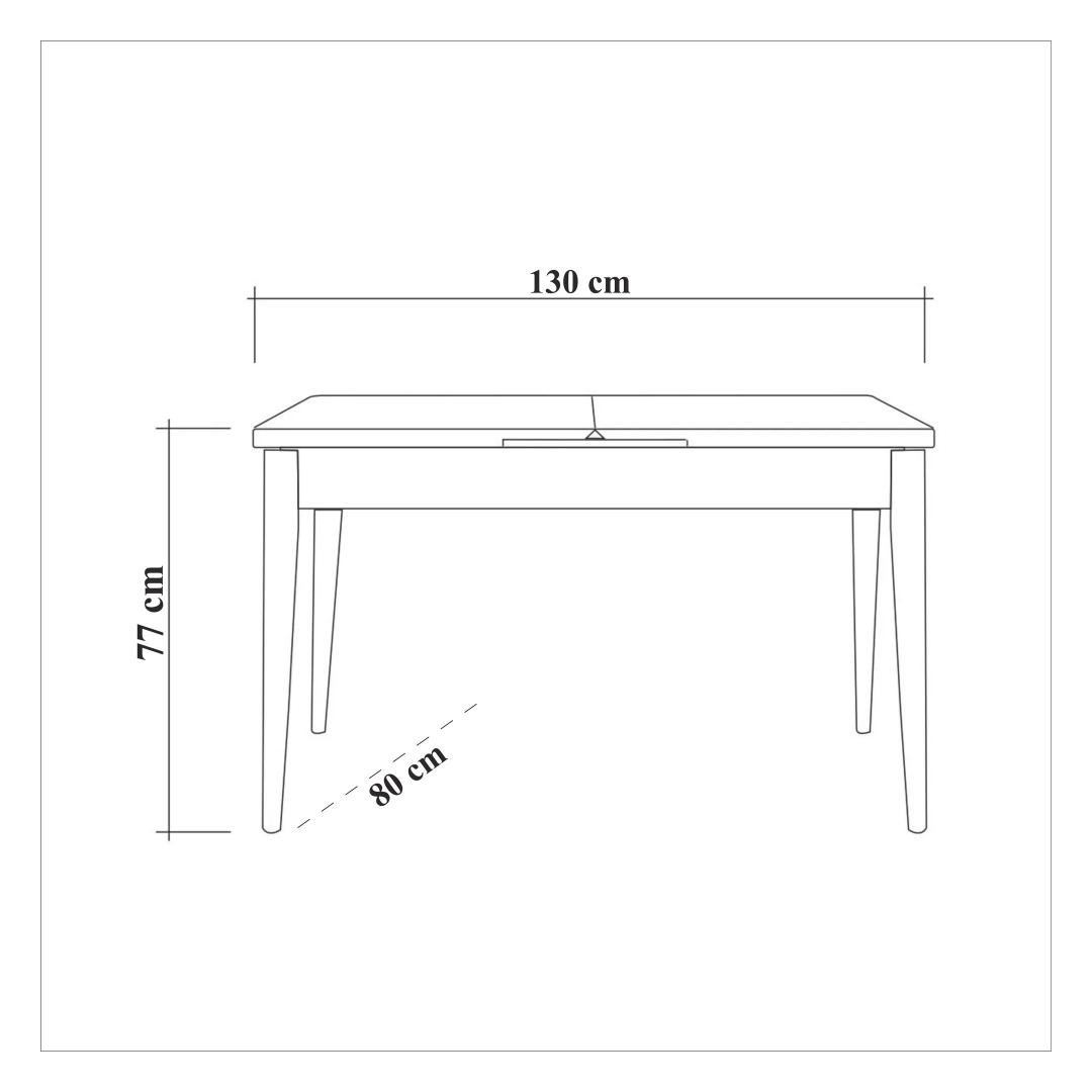 - Söögilaua suurus: laius: 130 cm, kõrgus: 77 cm, sügavus: 80 cm (1 tk)
