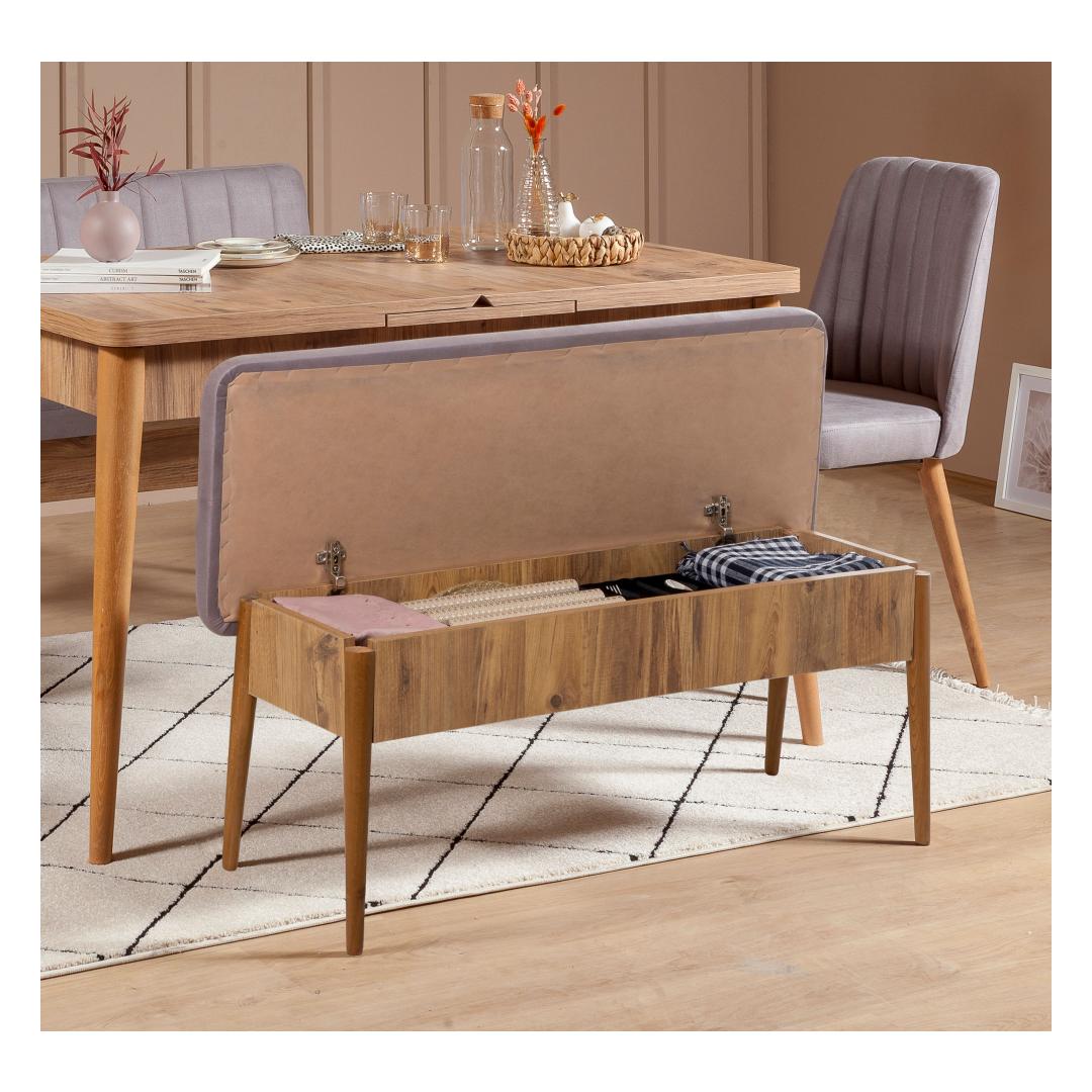 Lisaks söögikomplektile sisaldab see toode ka hoiukappi, kus on piisavalt ruumi, et hoida oma söögitarbed organiseerituna ja käeulatuses. Atlandi mänd ja Soho värvikombinatsioon lisavad igasse söögiruumi soojust ja võlu, olgu see siis kaasaegne, maamees, Skandinaavia või maastikust inspireeritud.