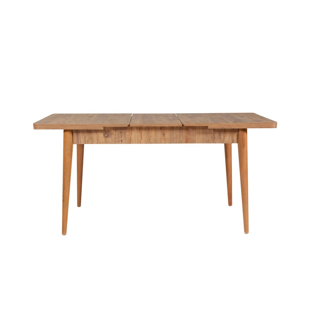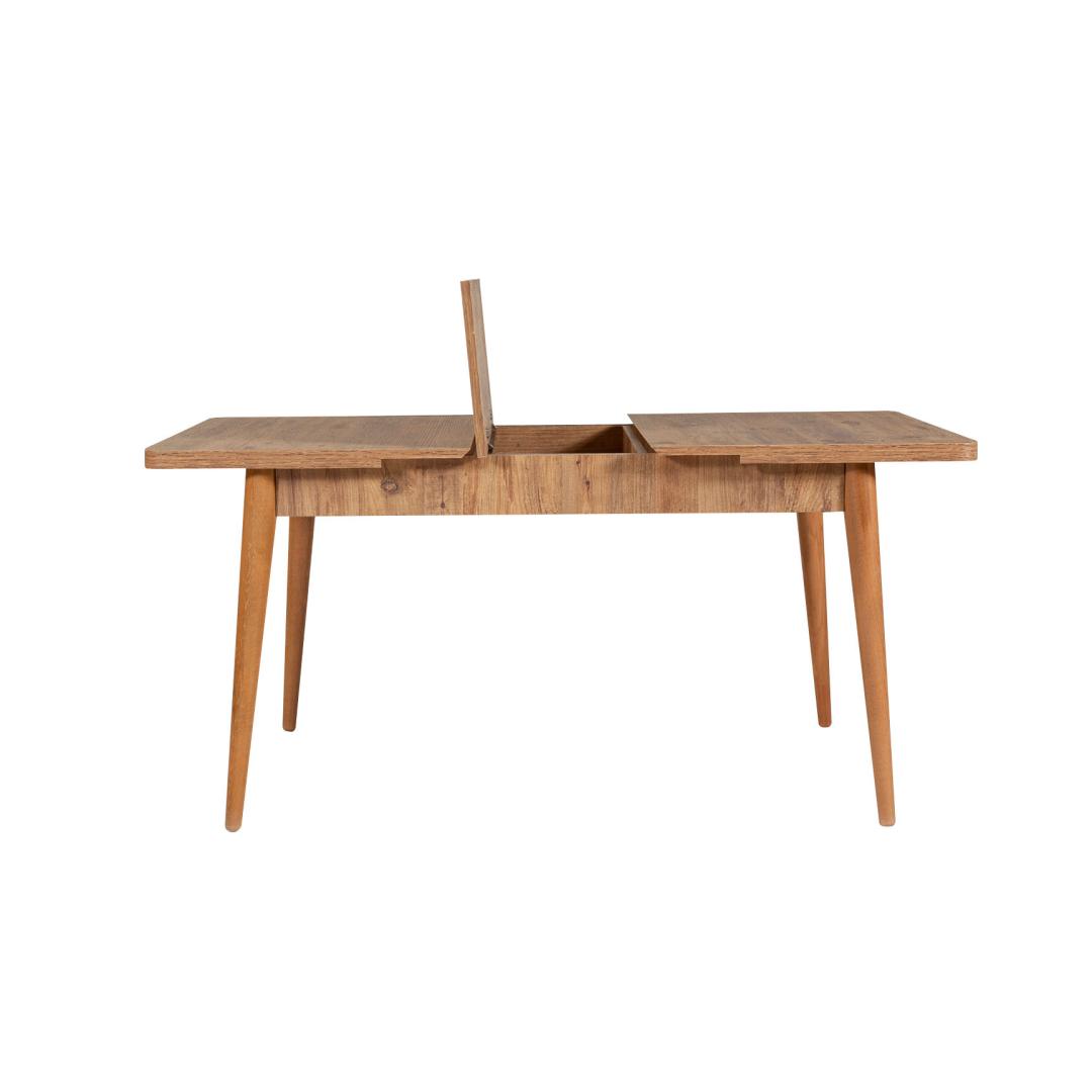 Muuda oma söögiala stiilseks ja kutsuvaks ruumiks meie pikendatava söögilaua ja toolide komplektiga. Valmistatud 100% melamiinkattega puitlaastplaadist ja varustatud sarapuu jalgadega, on see komplekt mitte ainult vastupidav, vaid kiirgab ka elegantsi ja rafineeritust.