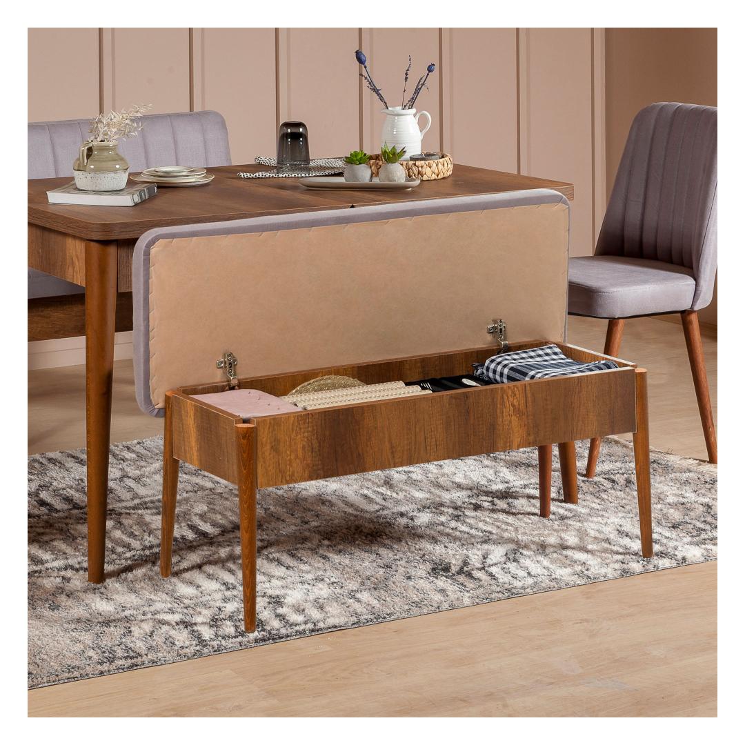 Komplekti kuuluv hoiukapp pakub mugavat lahendust, et hoida oma söögitarbed organiseerituna ja käeulatuses. Pähklipuu ja Soho värvid lisavad sinu söögiruumi soojust ja rafineeritust, muutes selle ideaalseks lisandiks igasse kaasaegsesse, maase või Skandinaavia stiilis sisustusse.