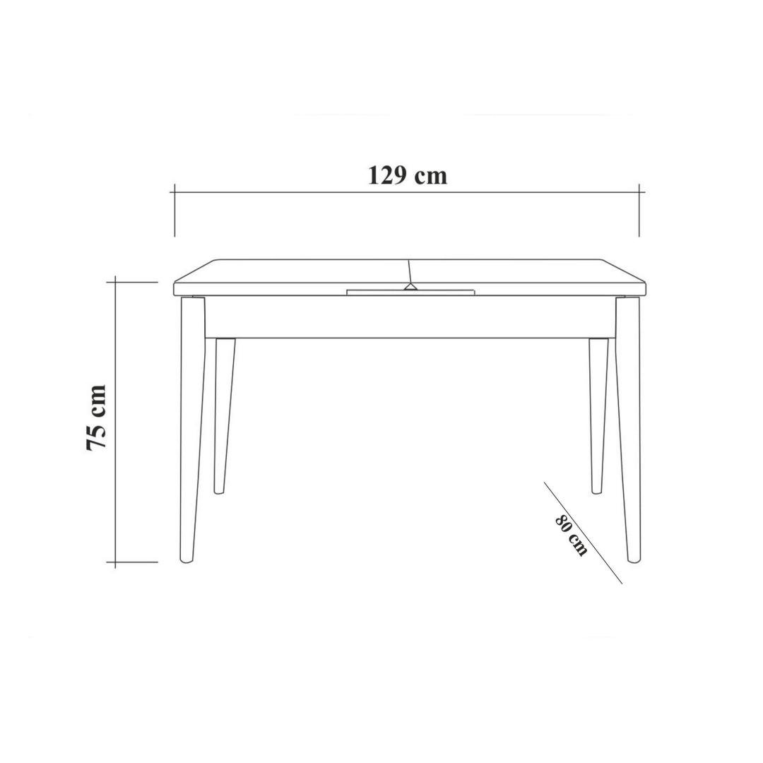 • Söögilaua suurus: Laius: 129 cm, kõrgus: 75 cm, sügavus: 80 cm (1 tk).