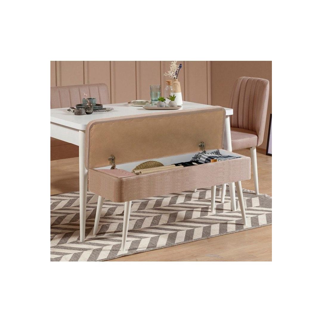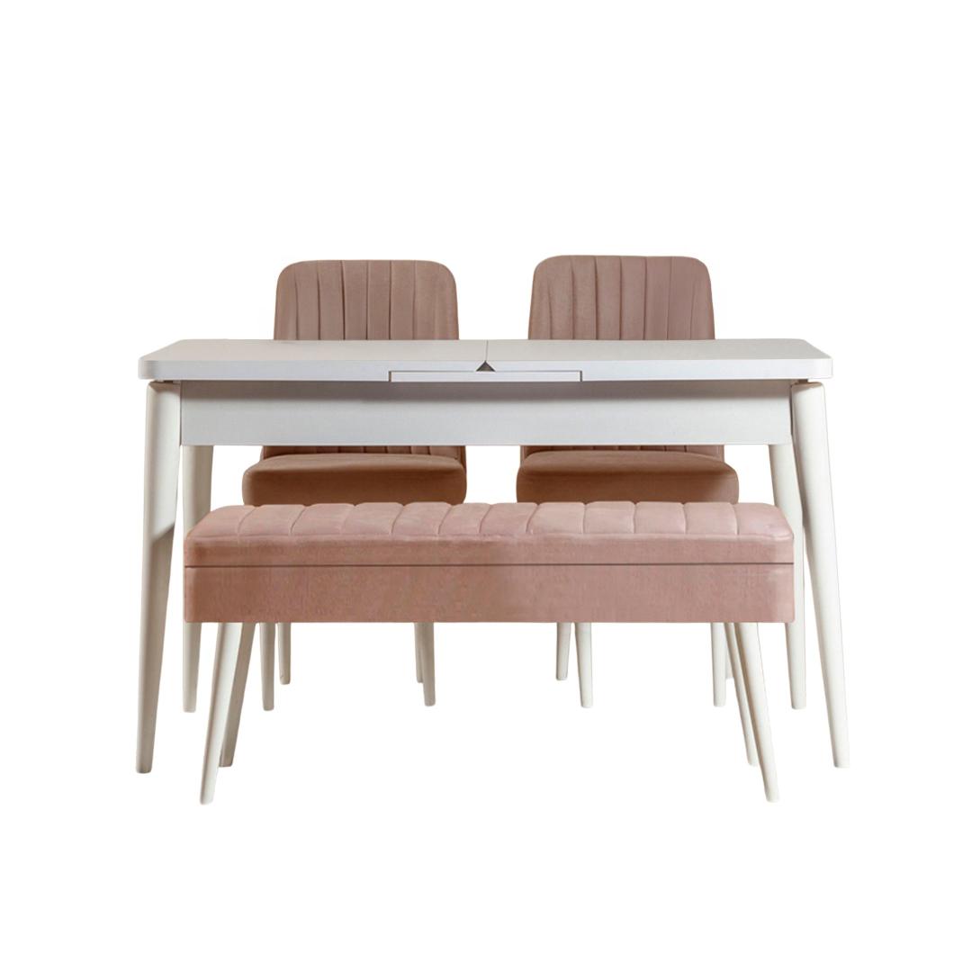 Tänu pikendatavale disainile kohandub meie söögilaud vaevata teie vajadustele. Olenemata sellest, kas korraldate intiimset õhtusööki kahele või suuremat koosviibimist, avage laud lihtsalt täissuuruseks ja kõik mahuvad mugavalt ära. Komplekti kuuluvad ka kaks tooli ja pink, mis pakuvad külalistele piisavalt istumisvõimalusi.