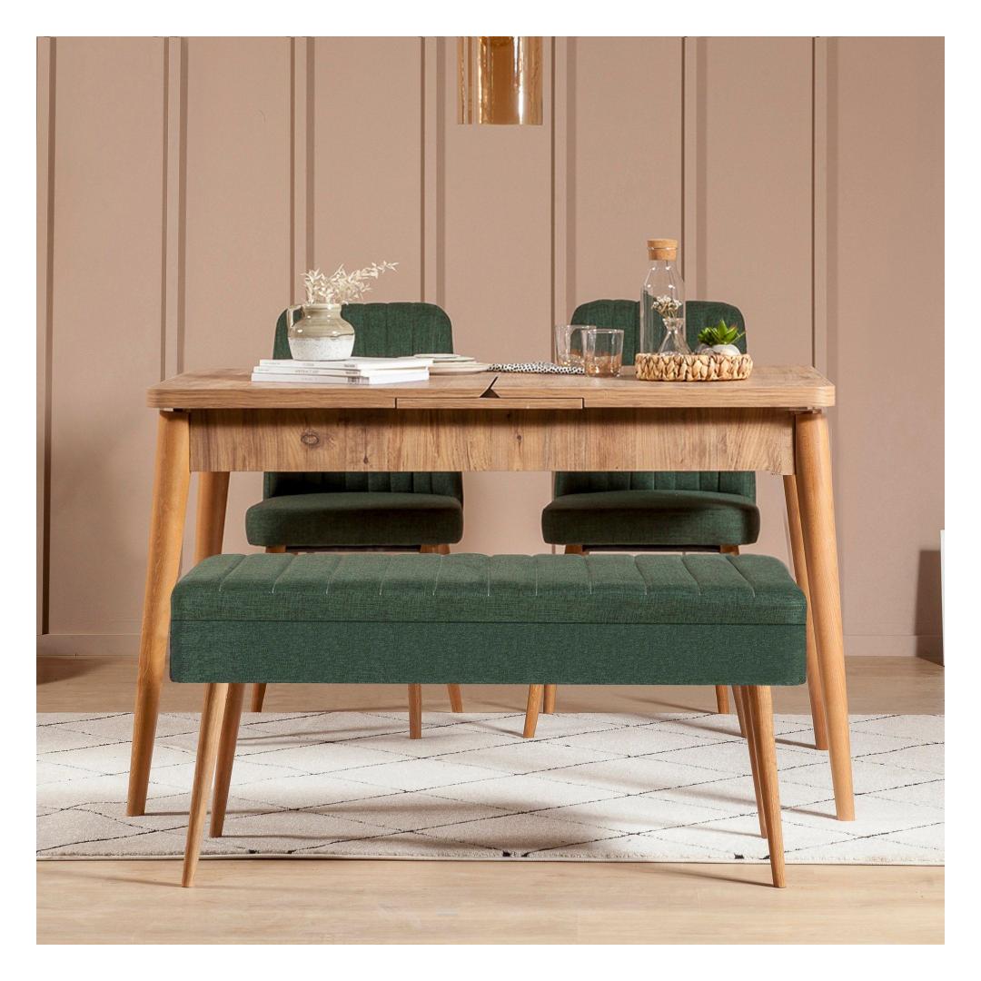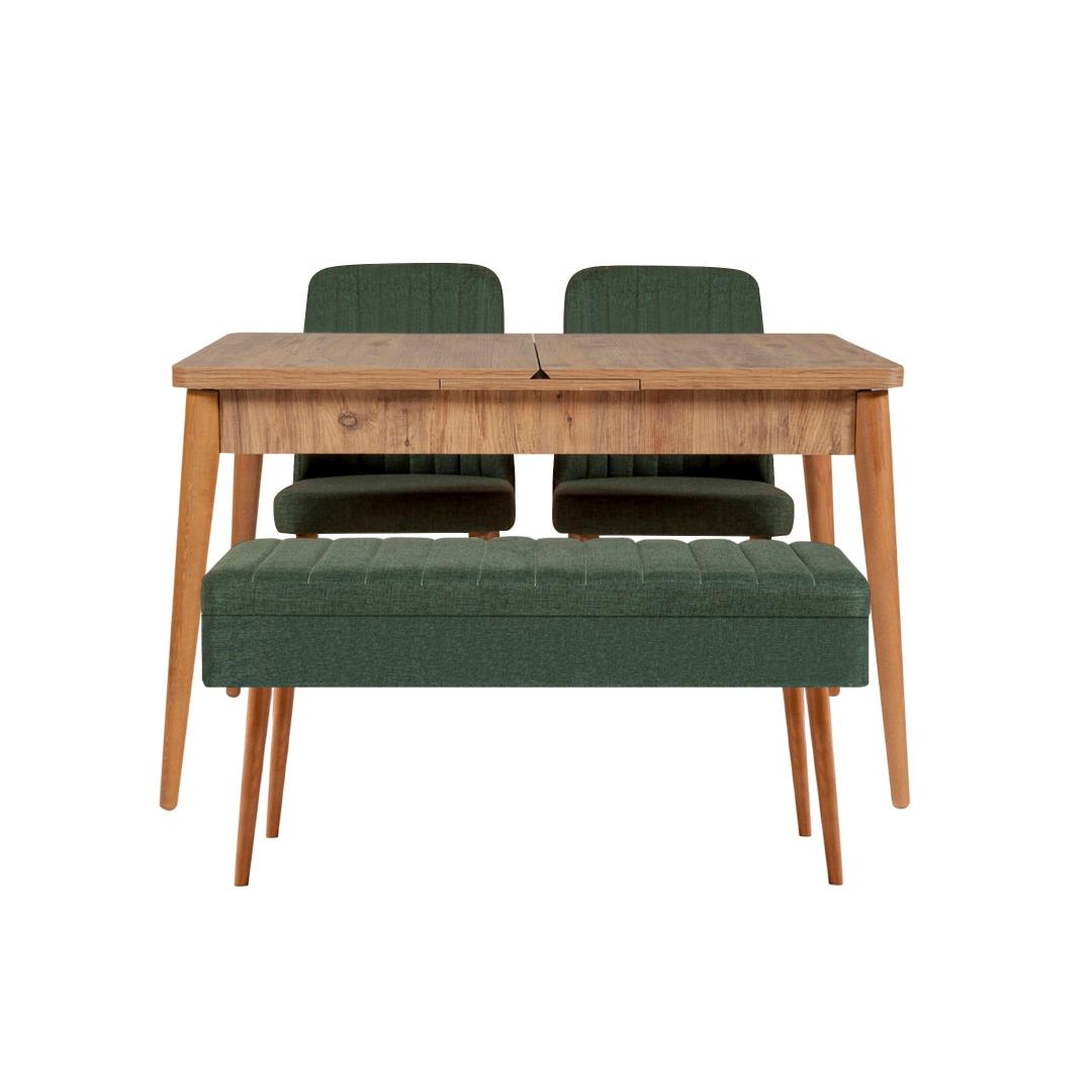 Selles komplektis olevad kaks tooli on hoolikalt valmistatud, et pakkuda optimaalset mugavust ja tuge. Need on polsterdatud 100% linasest kangast ja pakuvad luksuslikku istumisvõimalust, mis paneb teie külalised end hellitatud tundma. Atlandi männi ja rohelise värvi kombinatsioon lisab teie söögikohale värskendava ja kaasaegse puudutuse.