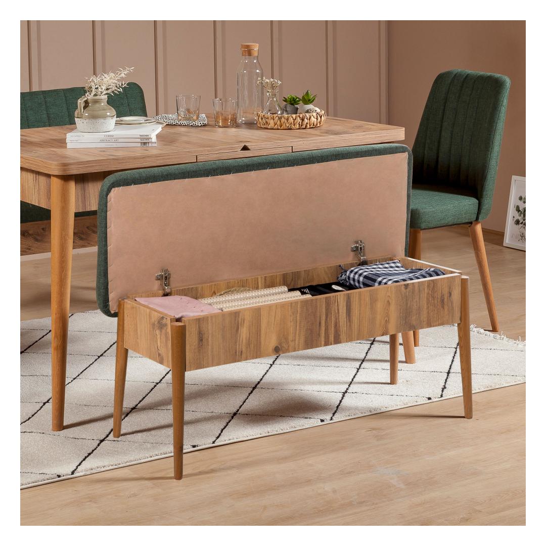 Pikendatav söögilaud võimaldab sul mugavalt mahutada rohkem külalisi, samas kui sarapuu jalad tagavad stabiilsuse ja vastupidavuse. Toolid ja pink pakuvad mugavat istumiskogemust oma 45 cm istme kõrgusega, mis on ideaalne pikkade õhtusöökide ja koosolekute jaoks. Ladustamisseade lisab sinu söögialale funktsionaalsust ja stiili, hoides sinu vajalikud asjad käeulatuses.