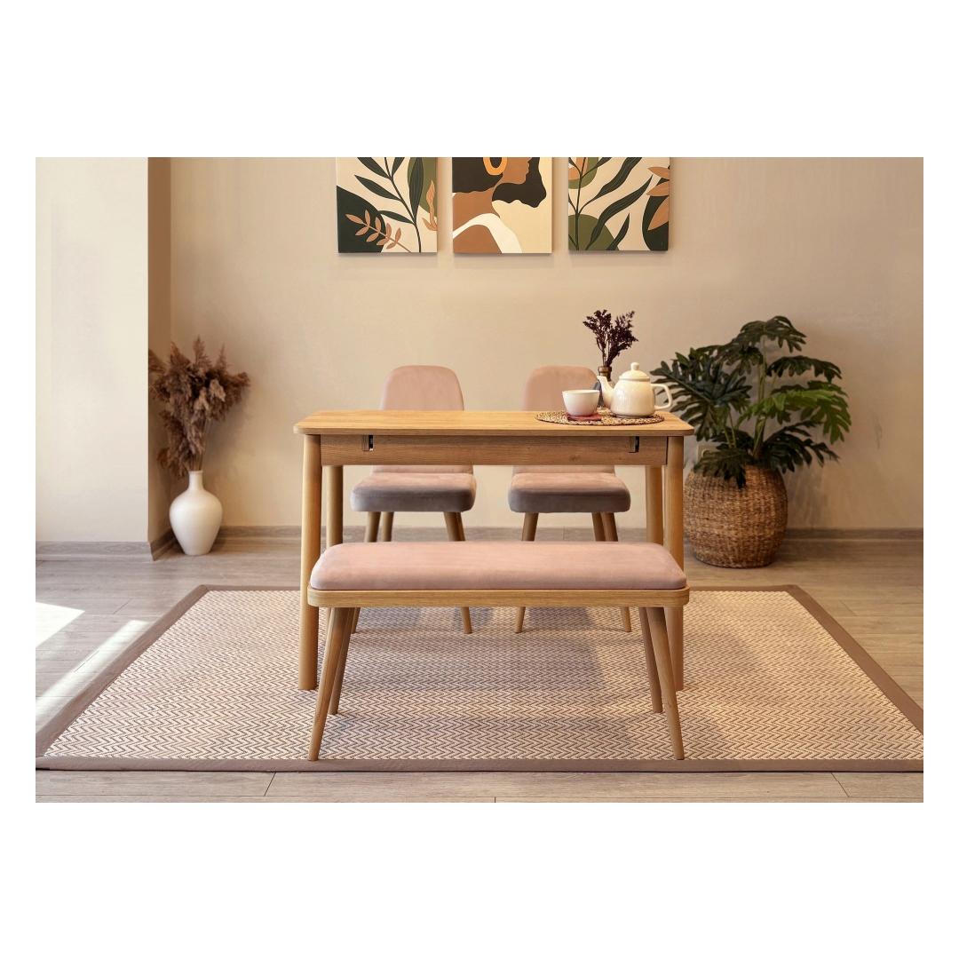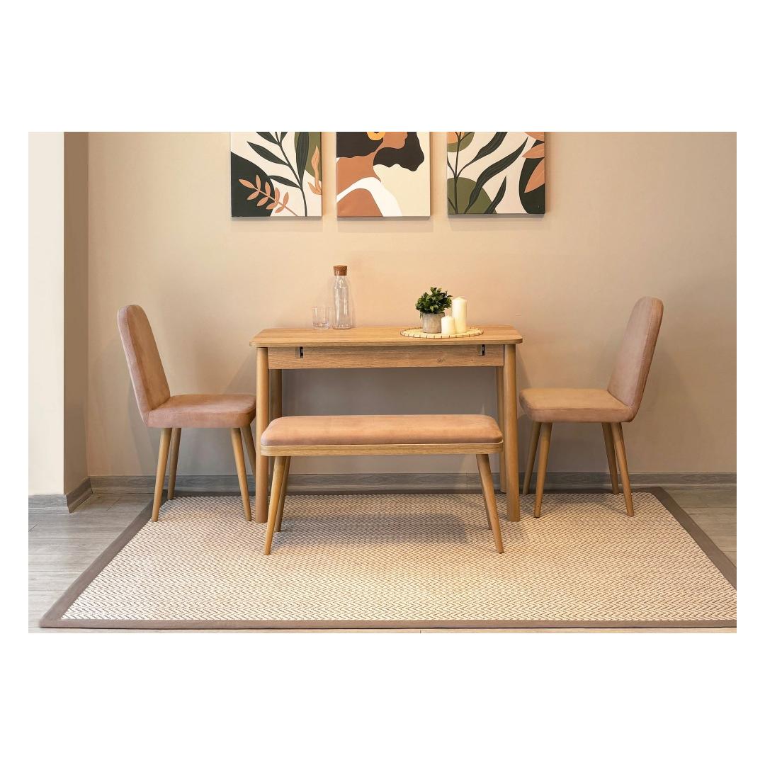 Komplekti kuuluvad toolid ja pink on disainitud mugavust silmas pidades, pakkudes ideaalset istumiskõrgust ja sügavust, et tagada hubane söögikogemus. Tugev konstruktsioon pakub lisakohti teie külalistele.