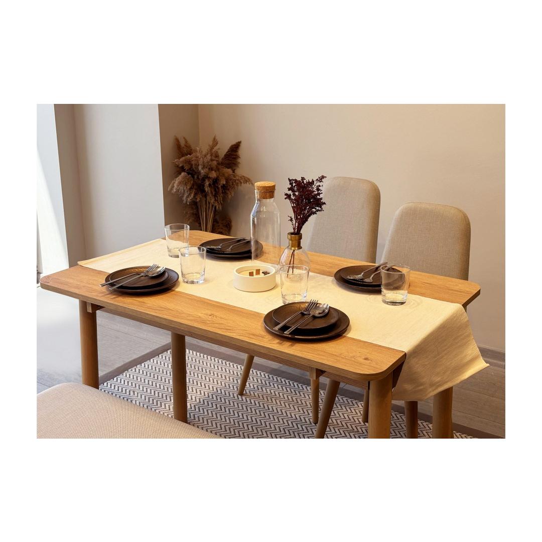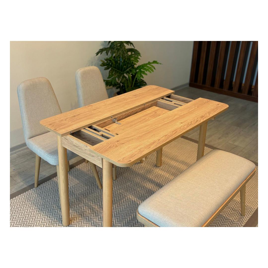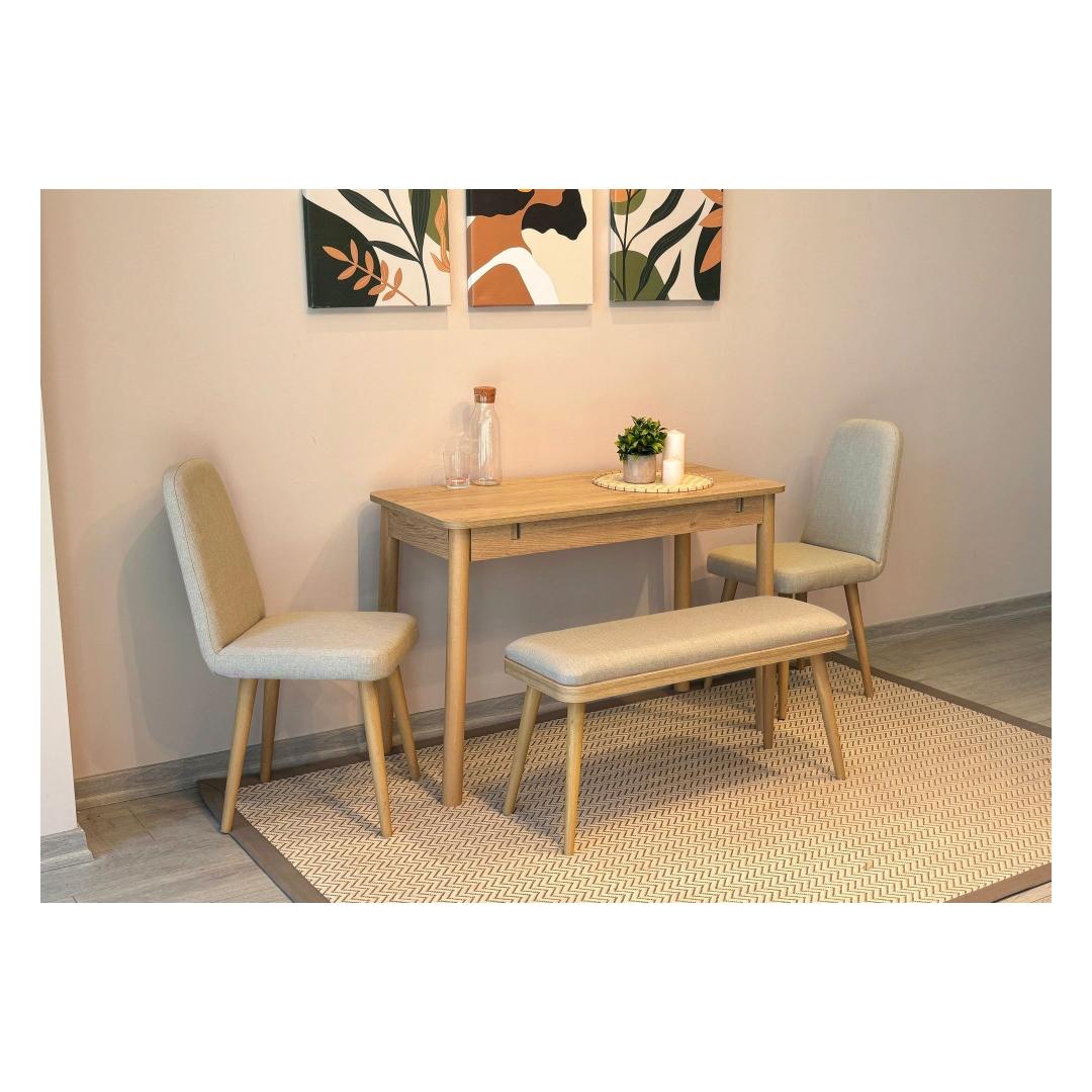 Funktsionaalne ja mitmekülgne: Pikendatav söögilaud võimaldab teil vajadusel hõlpsasti lisakülastajaid mahutada, samas kui toolid ja pink pakuvad mugavat istumist kõigile. Komplekt sobib igapäevaseks kasutamiseks või erilisteks puhkudeks.