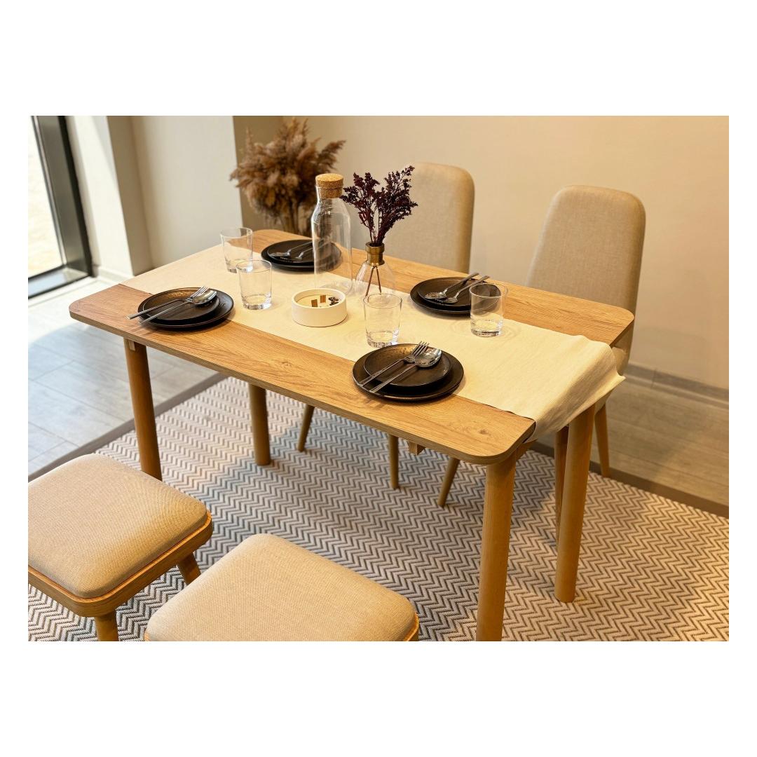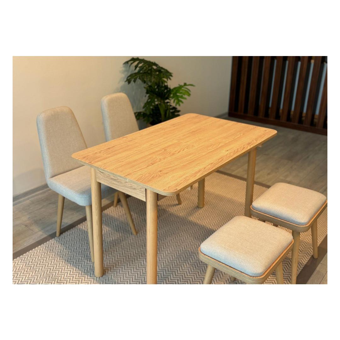 Valmistatud 100% melamiinkattega puitlaastplaadist, on see komplekt mitte ainult stiilne, vaid ka vastupidav ja lihtne puhastada. Toolid ja taburetid on disainitud maksimaalse mugavuse tagamiseks, pakkudes ideaalset istumiskõrgust ja sügavust, et tagada kõigile lõõgastav söögikogemus.