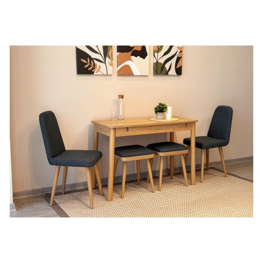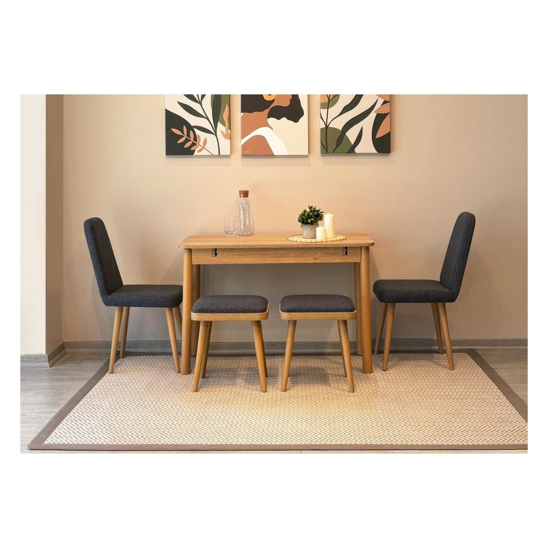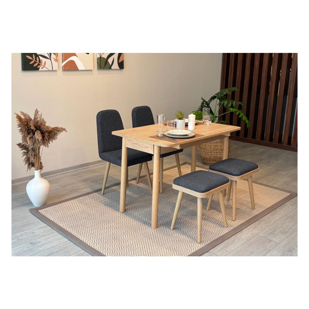 Pikendatav söögilaud võimaldab sul hõlpsasti külalisi mahutada ja vajadusel rohkem ruumi luua. Toolid ja taburetid on disainitud mugavuseks, omades ideaalseid mõõtmeid hubase söögikogemuse jaoks.