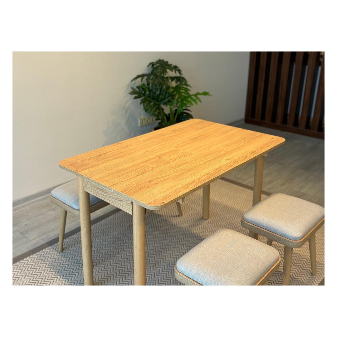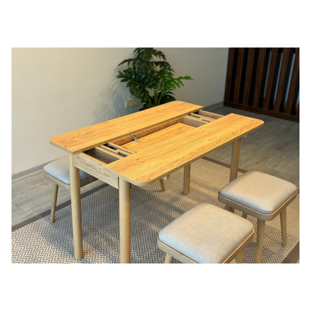 Muuda oma söögituba hubaseks ja kutsuvaks alaks meie pikendatava söögilaua ja toolide komplektiga. See 4-osaline komplekt on ideaalne väikeste ruumide jaoks, pakkudes nii stiili kui ka funktsionaalsust.