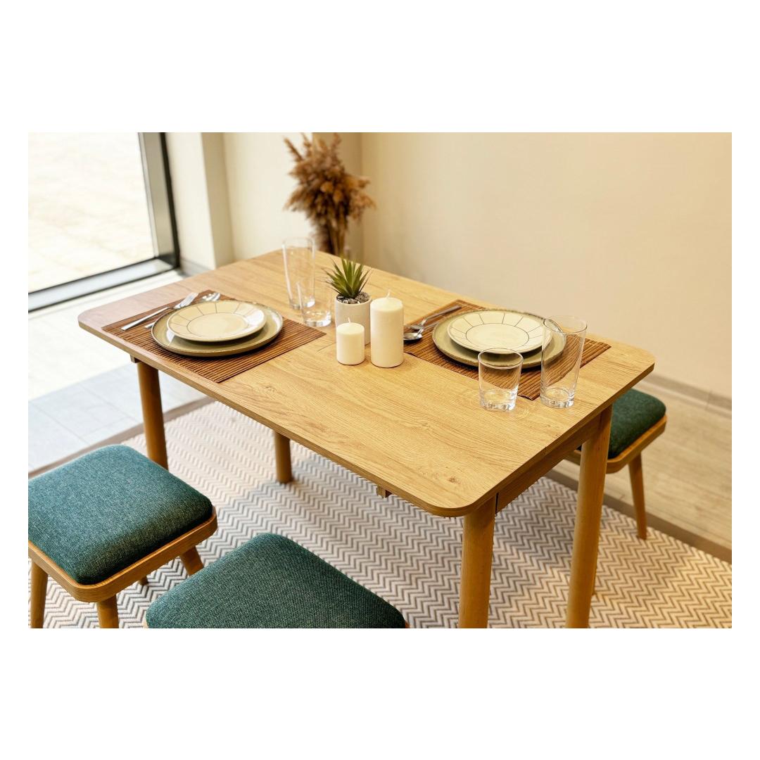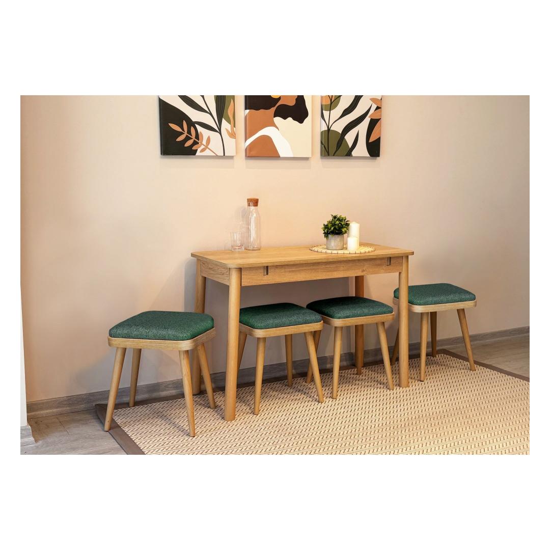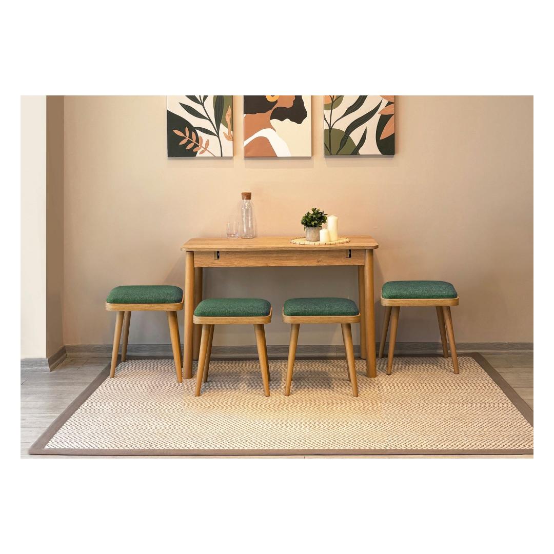 Valmistatud 100% melamiinkattega puitlaastplaadist, on see söögikomplekt mitte ainult vastupidav, vaid kiirgab ka luksuslikku välimust. Tamme ja rohelise värvi kombinatsioon lisab igasse ruumi peenust, luues pereliikmete ja külaliste jaoks sooja atmosfääri.