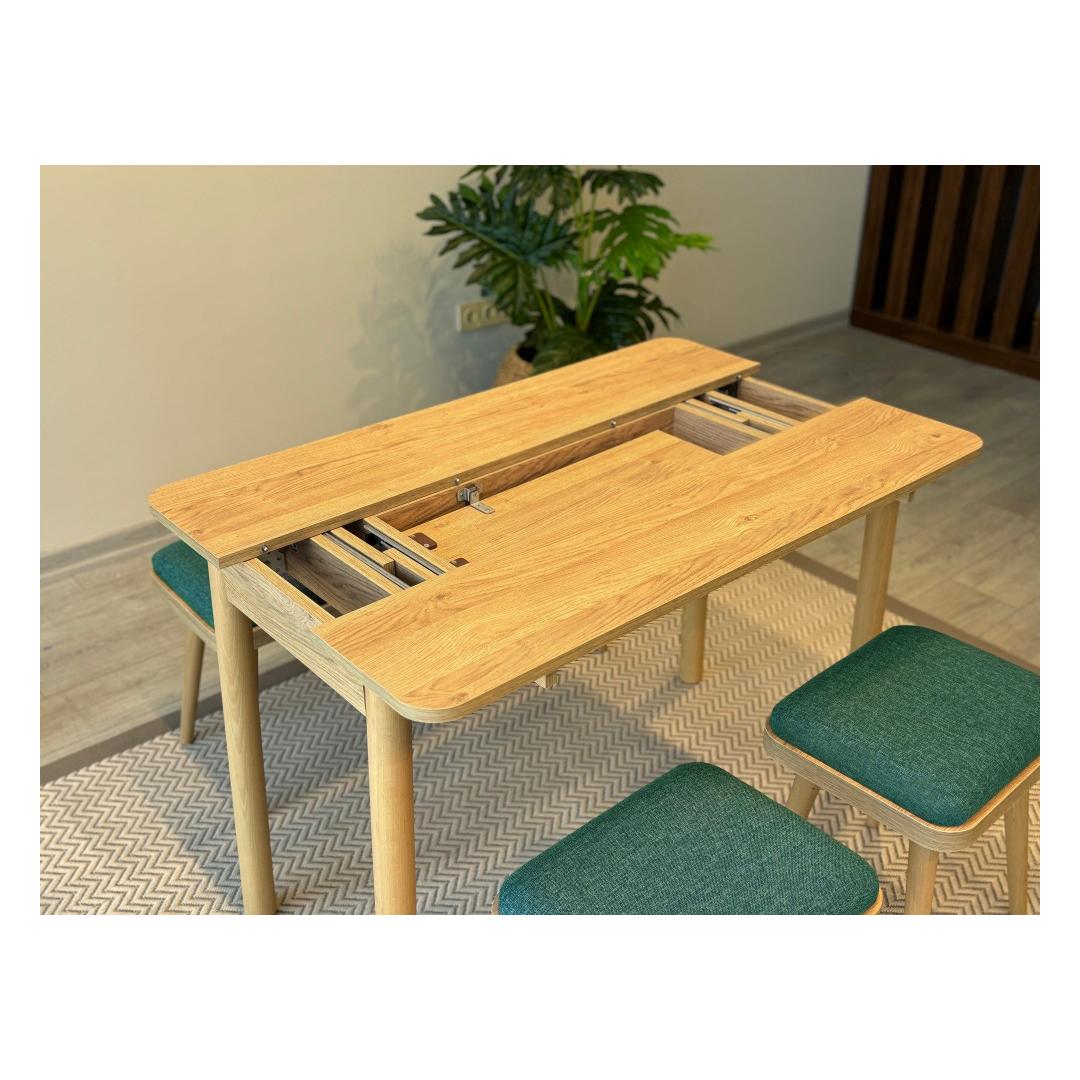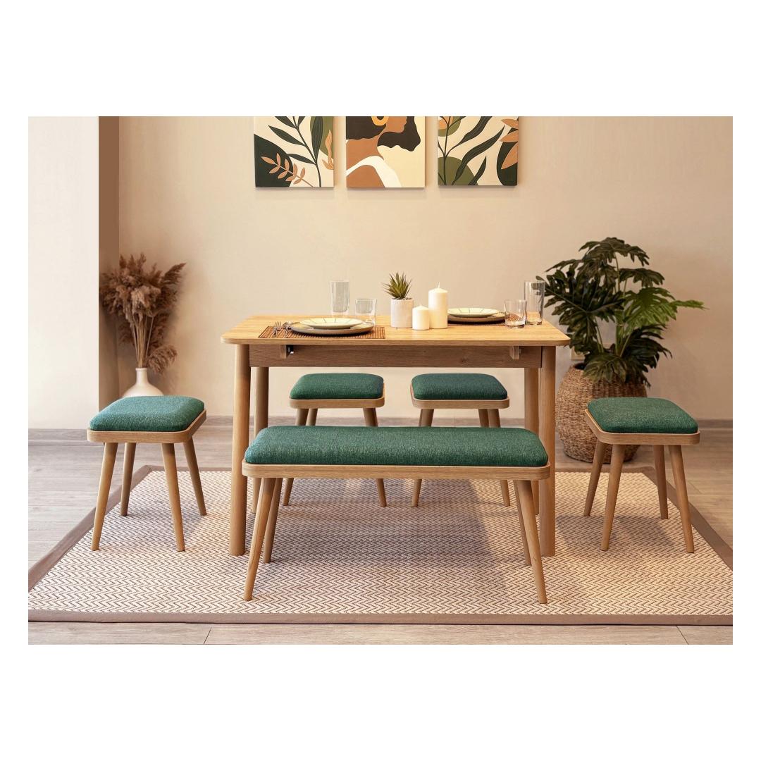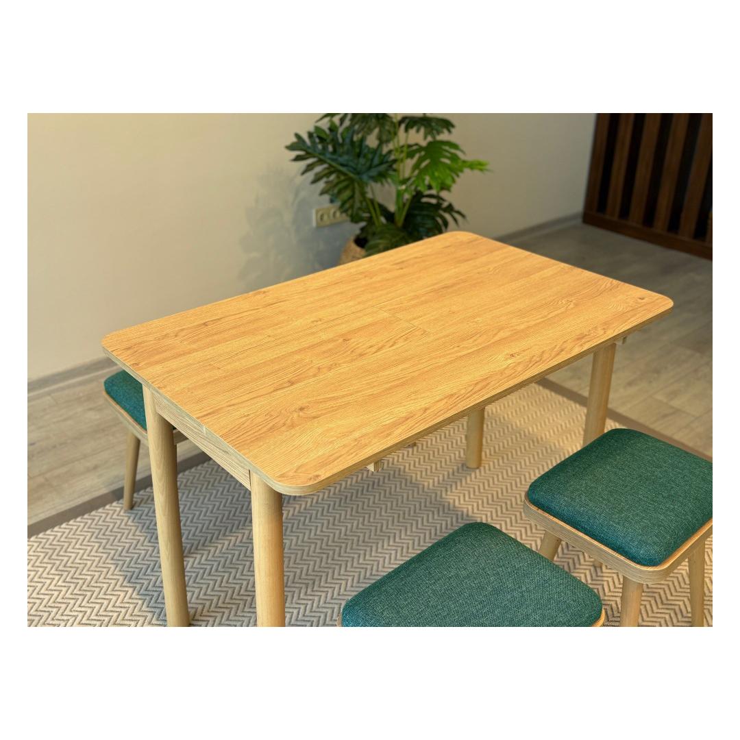 Valmistatud 100% melamiinkattega puitlaastplaadist, on see söögikomplekt mitte ainult vastupidav, vaid kiirgab ka luksuslikku välimust. Tamme ja rohelise värvi kombinatsioon lisab igasse ruumi peenust, luues pereliikmete ja külaliste jaoks sooja atmosfääri.