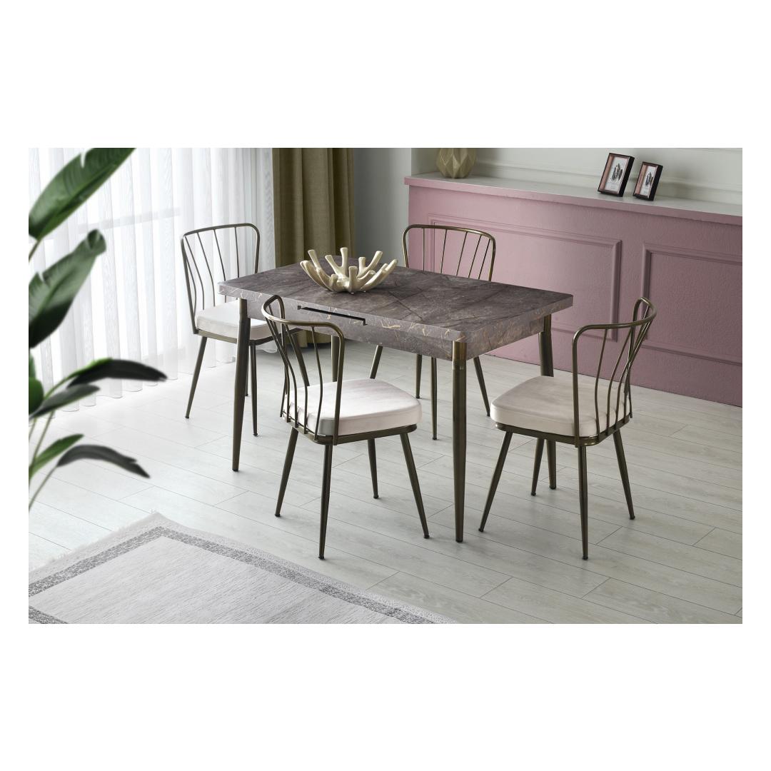Koge boheemlaslikku elegantsi meie luksusliku toolikomplektigaMuutke oma ruum mugavuse ja stiili paradiisiks meie peenikese toolikomplektiga. See ülima täpsusega valmistatud neljast toolist koosnev komplekt on loodud teie eluruumi kaunistamiseks ja lummava atmosfääri loomiseks. Lõbutsege võrratu mugavusesVajutage sametist kangast istmetesse ja kogege sellist mugavust, mida te pole kunagi varem kogenud. Kanga pehmus koos ergonoomilise disainiga tagab lõõgastavad tunnid, olgu siis sööki nautides või oma lähedastega elavates vestlustes.Vabastage oma sisemine boheemlaslik vaimVõtke omaks boheemlaslik elustiil meie toolikomplektiga, mis ühendab vaevata moodsa disaini boheemlaslike elementidega. Keeruline metallraam ja seljatugi lisavad elegantsi ja rafineeritust, samas kui naaritsavärv lisab igasse ruumi sooja ja kutsuvat meeleolu. Looge luksuslikku hotelli-taolist atmosfääriTooge hotelli külluslikkus oma koju meie toolide komplektiga. Elegantne ja stiilne disain koos luksusliku sametkangaga tõstab koheselt teie ruumi esteetikat, andes sellele viie tärni tunnetuse. Tehnilised üksikasjad:Raam: MATERJAL: 100% METALLIste: VELVETKANGAS / MELAMIINKATTEGA PIIRISTATUD PUITSEKANGASSeljatugi: Seljatugi: Seljatugi: Seljatugi: METALLLaius: 43 cm Kõrgus: 82 cm Sügavus: 42 cm (4 tk)Istme kõrgus: 50 cmKandevõime: 175 kgVärv: MinkParandage oma ruumi meie toolide komplektiga ja andke end mugavalt ja stiilselt. Tellige kohe ja kogege boheemlaslikku elegantsi oma kodus! Värv: Mink
