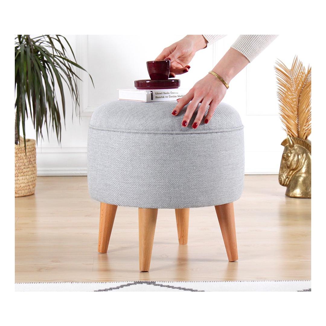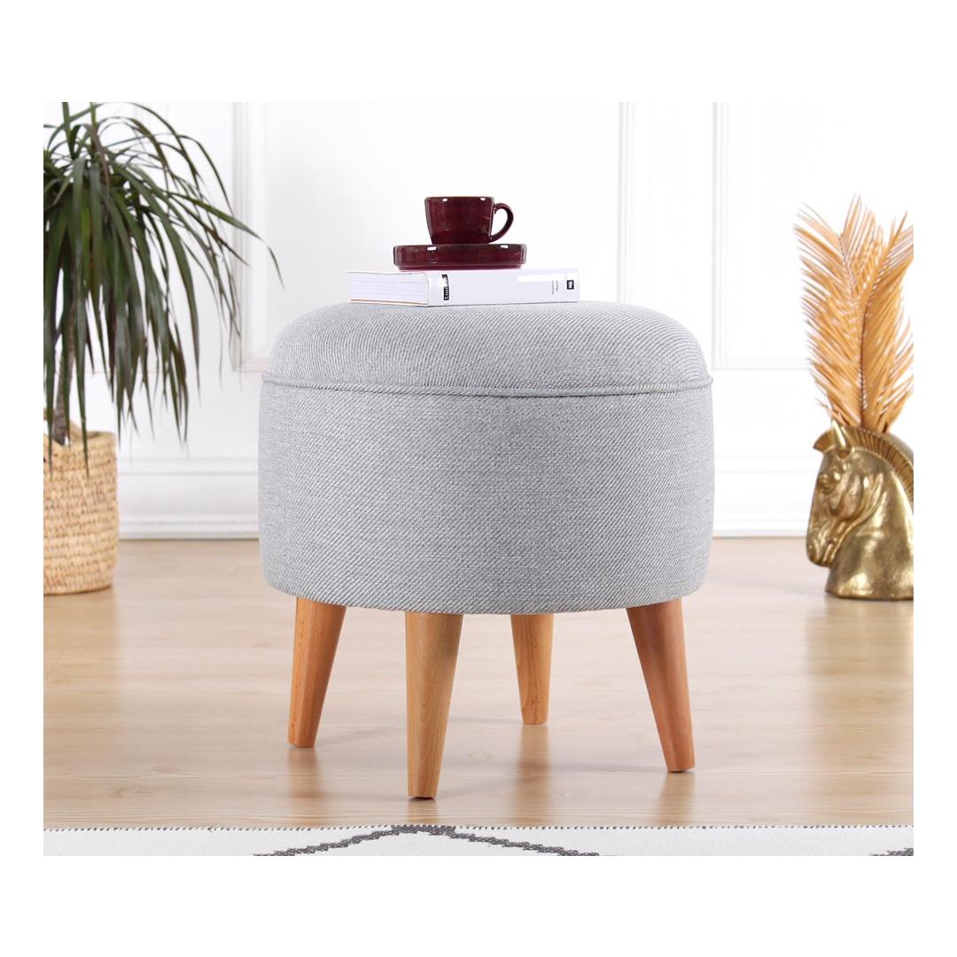 Oma neutraalse halli värviga sulandub meie pouffe vaevata mis tahes interjööri stiiliga, muutes selle mitmekülgseks esemeks, mida saab hõlpsasti integreerida teie olemasolevasse sisustusse. Puidust jalad lisavad rafineeritust ja stabiilsust, samas kui 6 cm paksune käsn pakub mugavat istumisvõimalust.