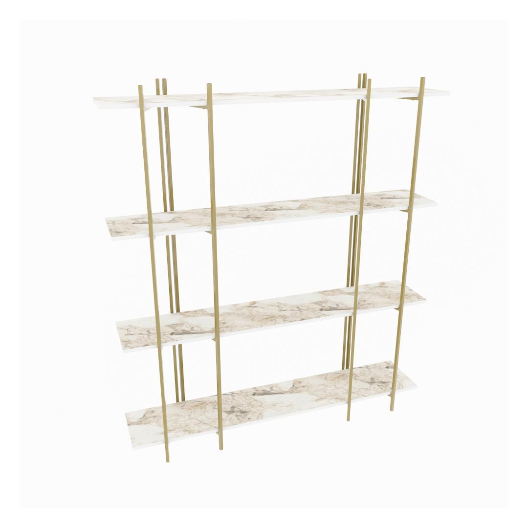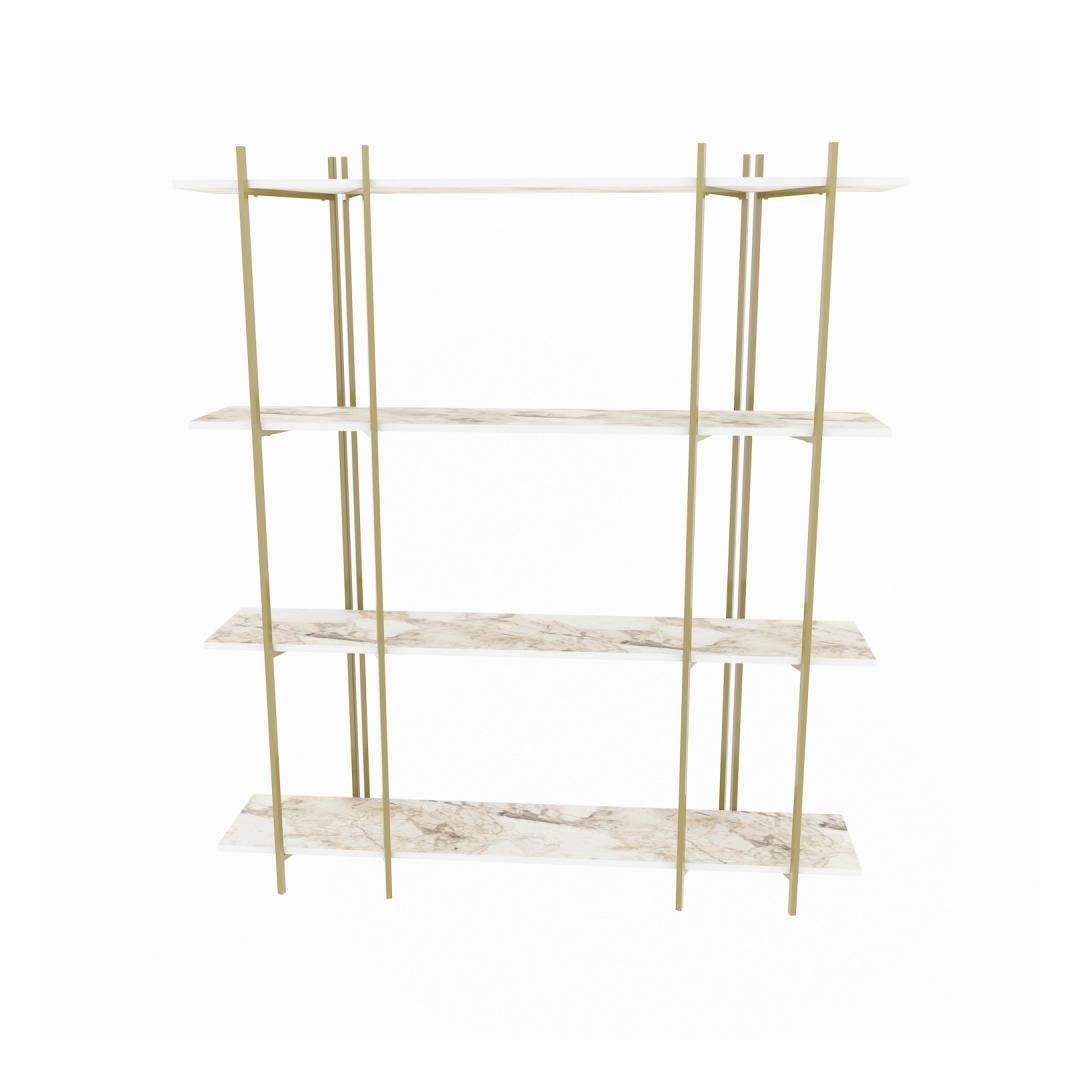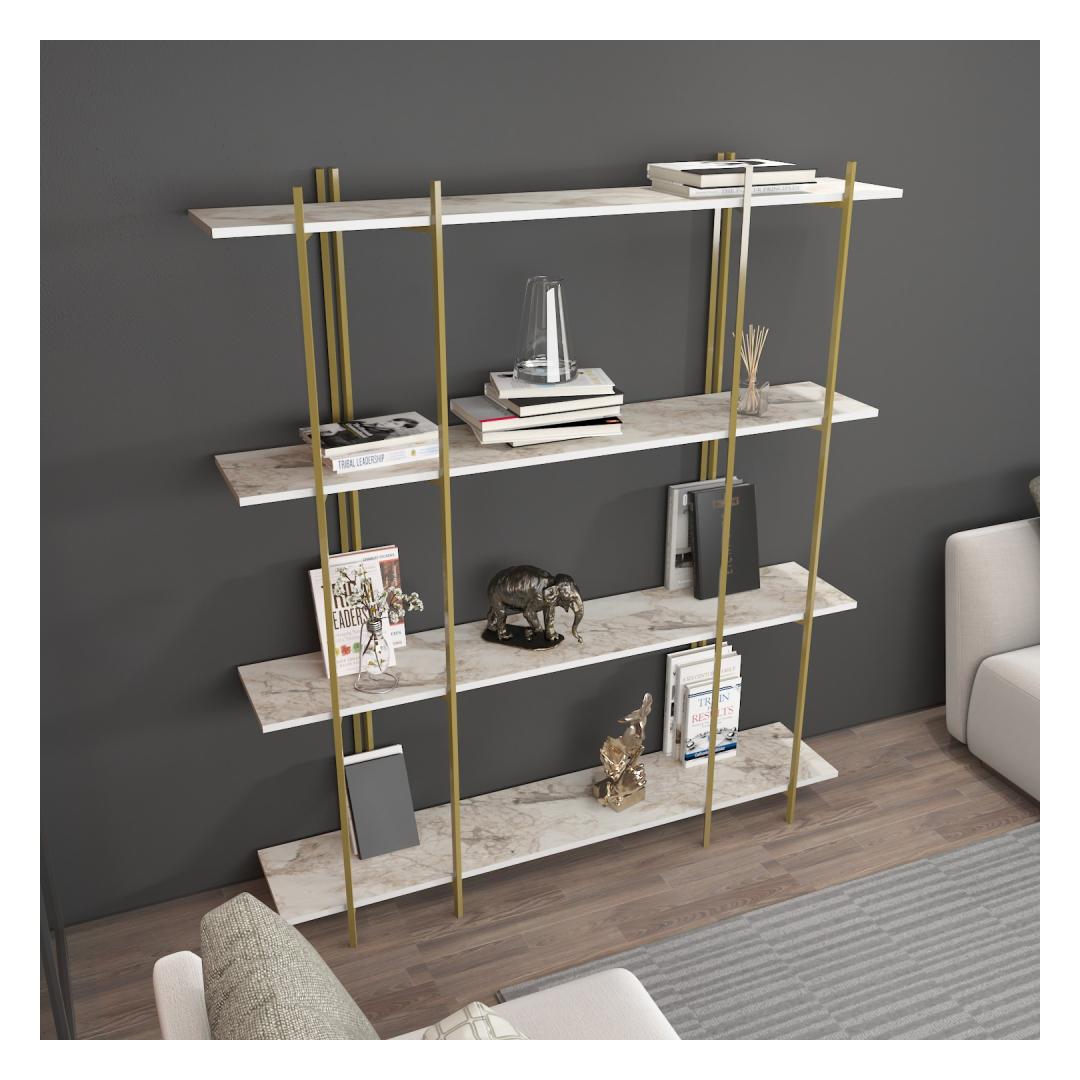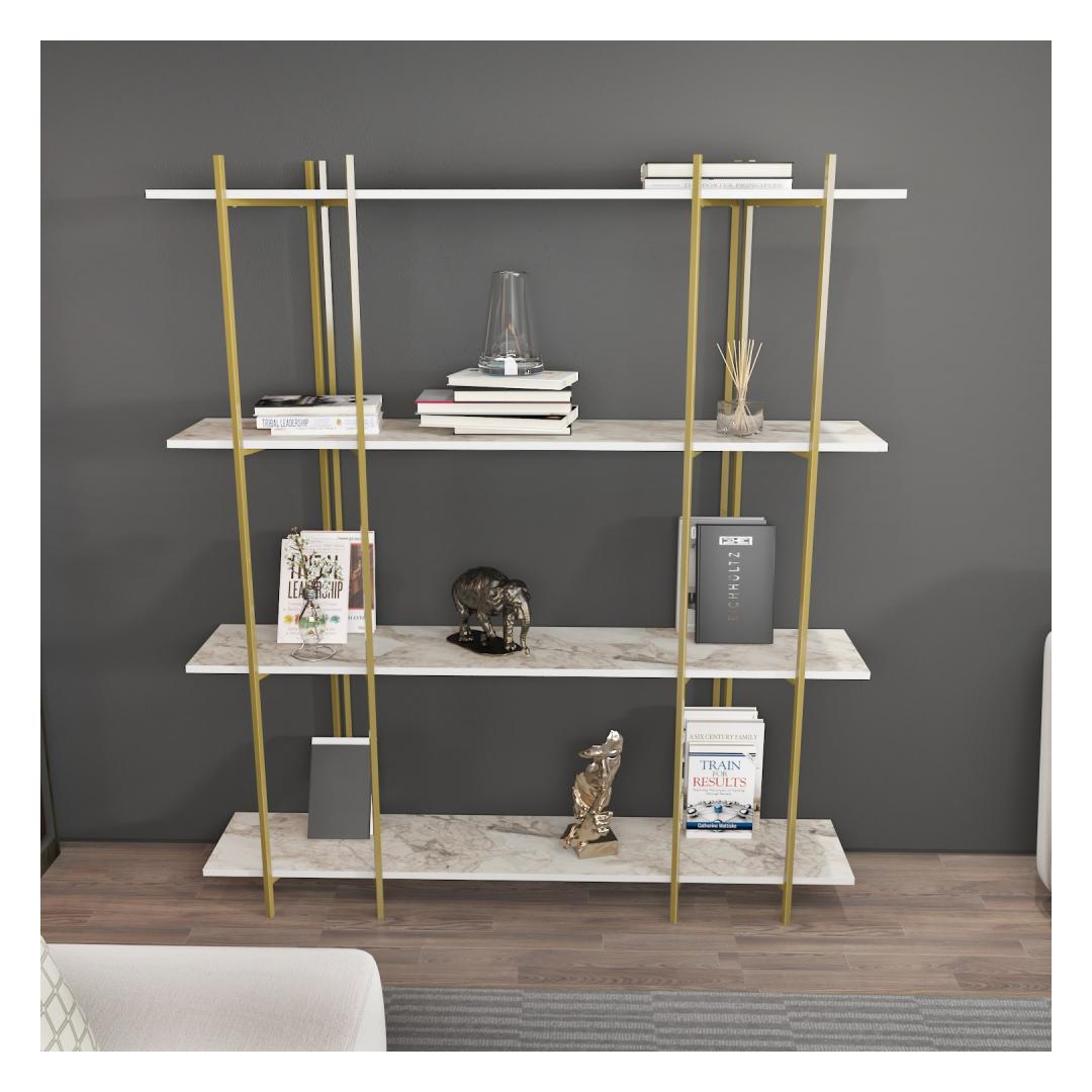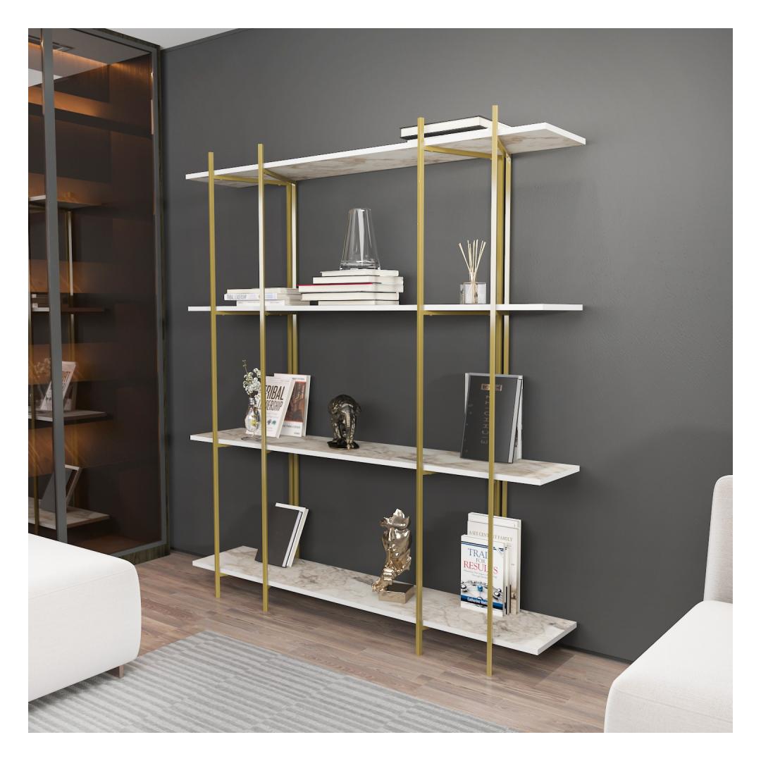 Tänu oma elegantsele ja modernsele disainile sulandub see raamaturiiul vaevata mis tahes sisekujundusega, lisades teie koju külluslikkust. Puhta valge ja luksusliku kuldse värvi kombinatsioon loob lummava visuaalse atraktiivsuse, mis avaldab kindlasti teie külalistele muljet ja jätab nad imestama.