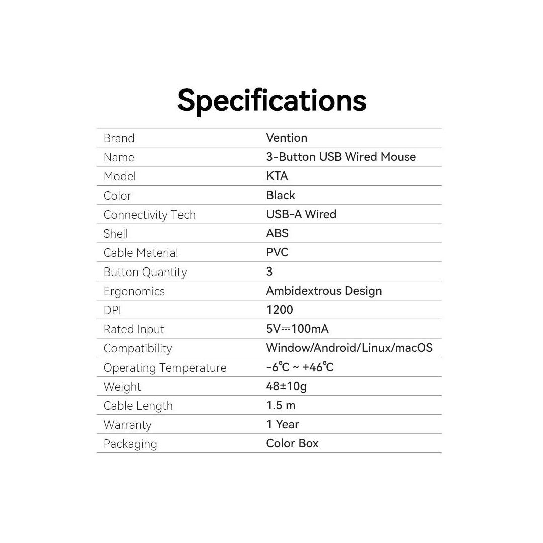 MOUSE USB OPTICAL BLACK/KTABG VENTION