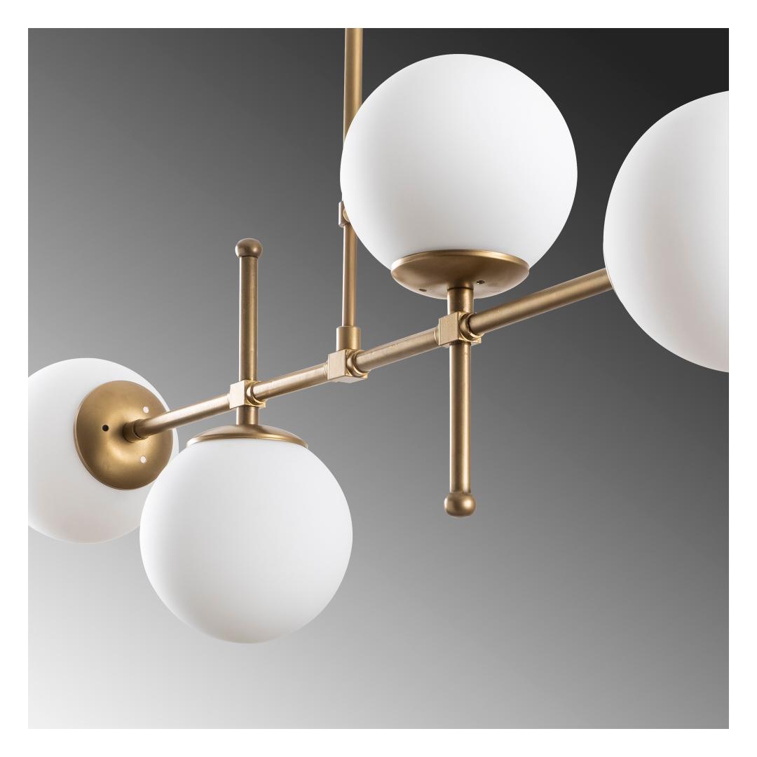 Muuda oma eluruum luksuslikuks pelgupaigaks meie kauni kuldse lühtri abil. Sujuv metallkorpus koos elegantse klaaskattega kiirgab rafineeritust ja stiili, muutes selle igas toas ideaalseks keskpunktiks.