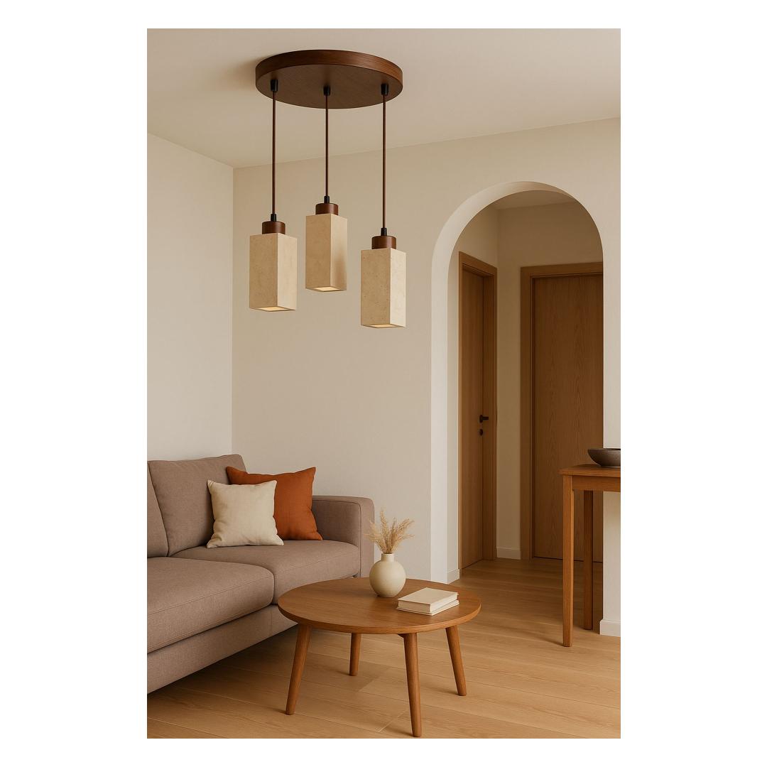 Selle lühtri keeruline disain sisaldab travertiinkatet ja hämmastavat beeži ja pähklipuu värvide kombinatsiooni, lisades teie kodu sisekujundusele looduslikku ilu. Reguleeritav kõrgus võimaldab teil kohandada valgustust, et see sobiks teie ruumiga ideaalselt, luues hubase atmosfääri, mis on nii kutsuv kui ka stiilne.