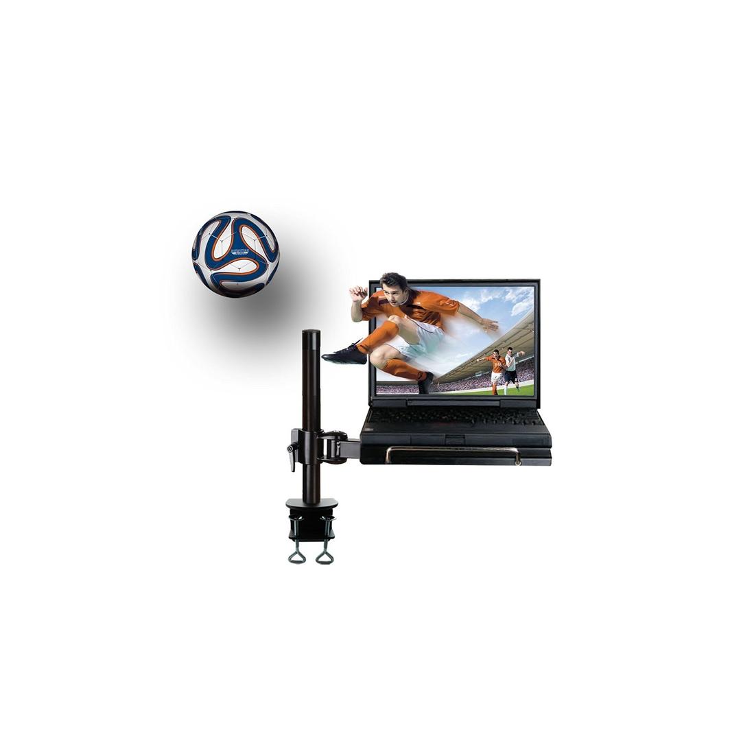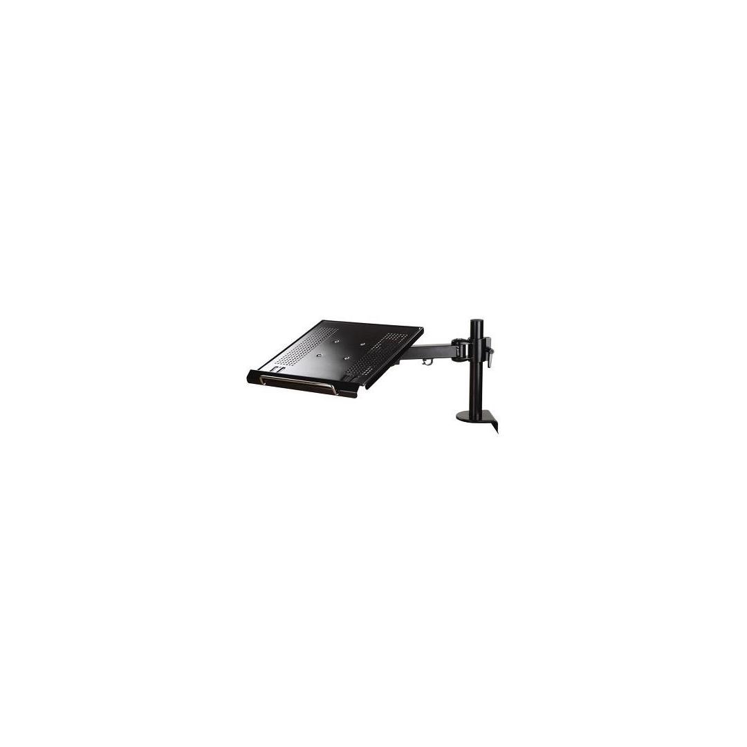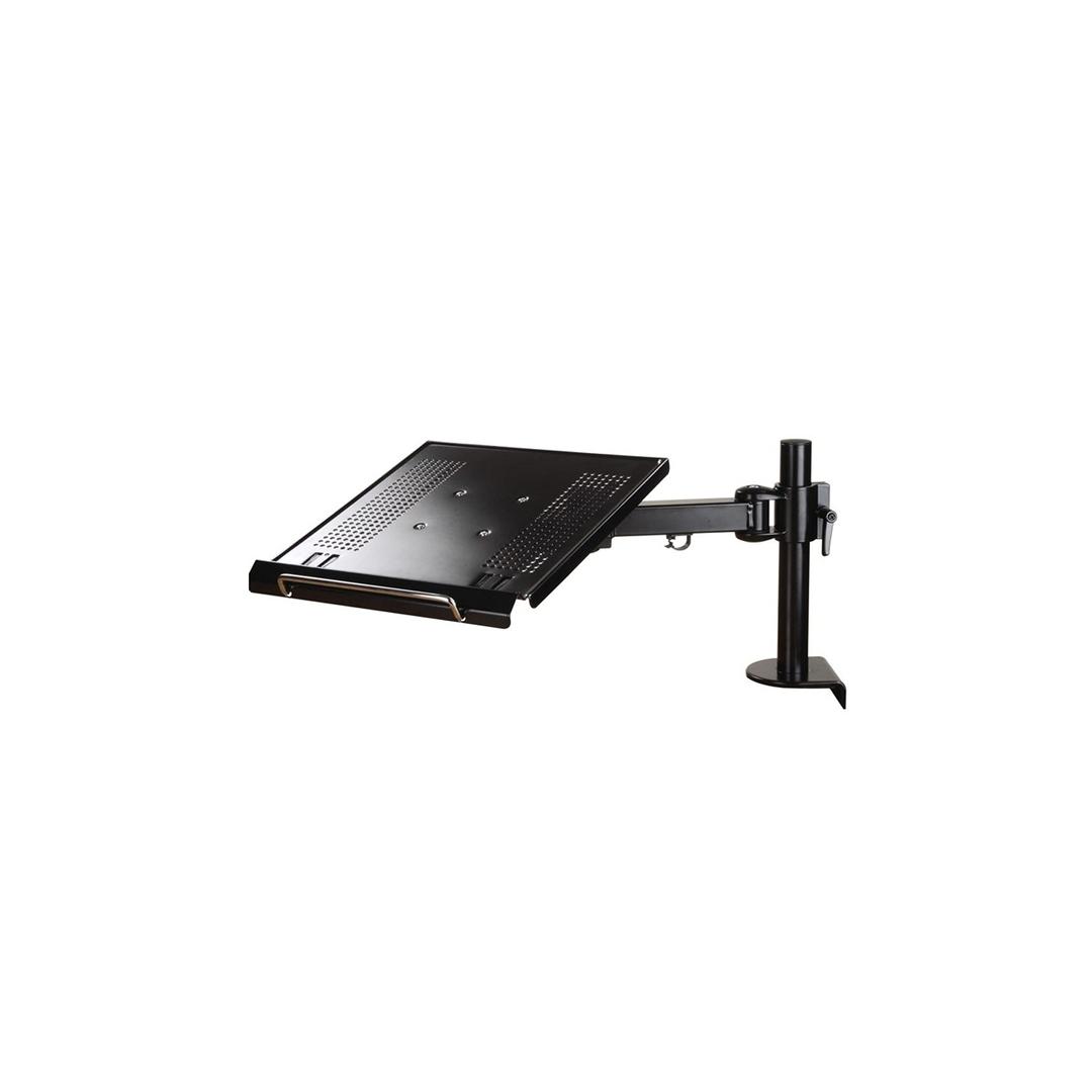 The NewStar notebook desk mount, model NOTEBOOK-D100 is a tilt- and swivel desk mount for notebooks up to 22”. This mount is a great choice for space saving placement on desks using a desk clamp. They keyboard holder included stores extra keyboards if used.