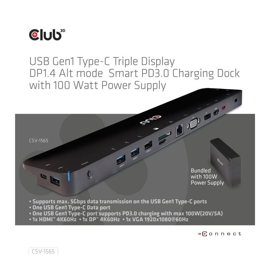 NB ACC DOCKING STATION/USB-C 100W CSV-1565 CLUB3D