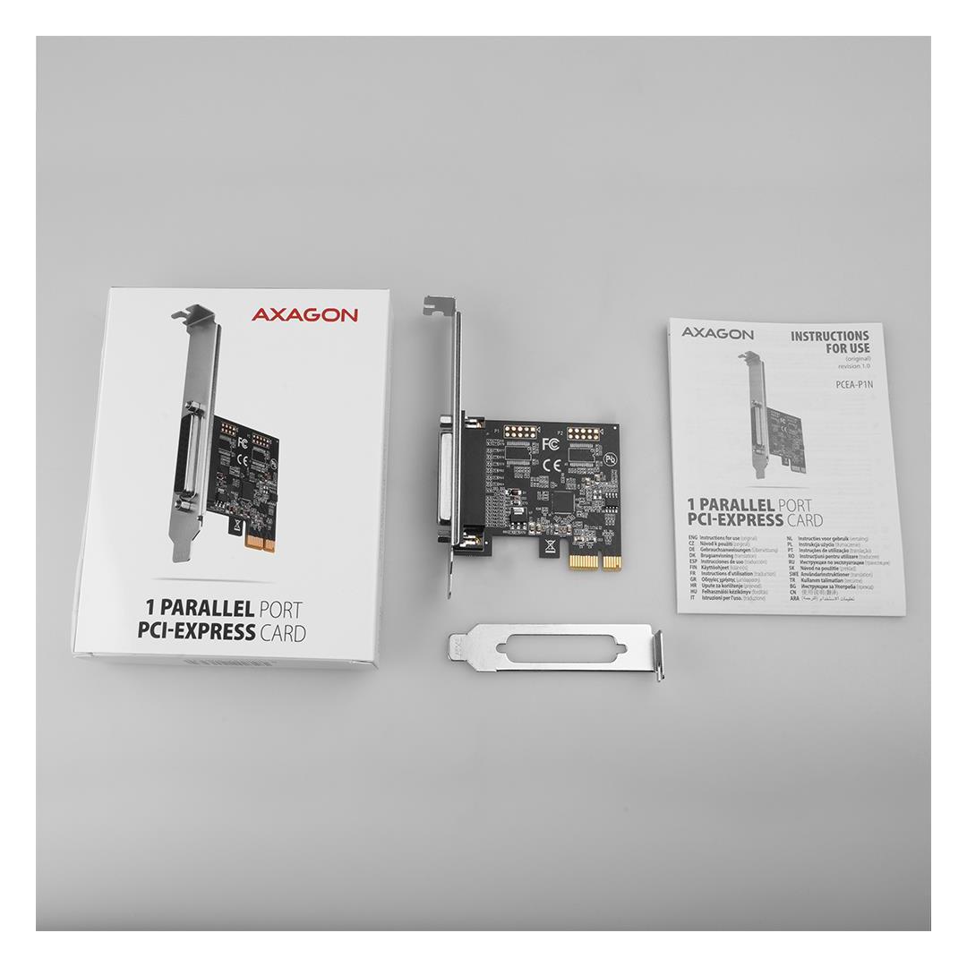 The AXAGON PCEA-P1N PCI-Express card adds one parallel port with a DB25 connector to your desktop PC.