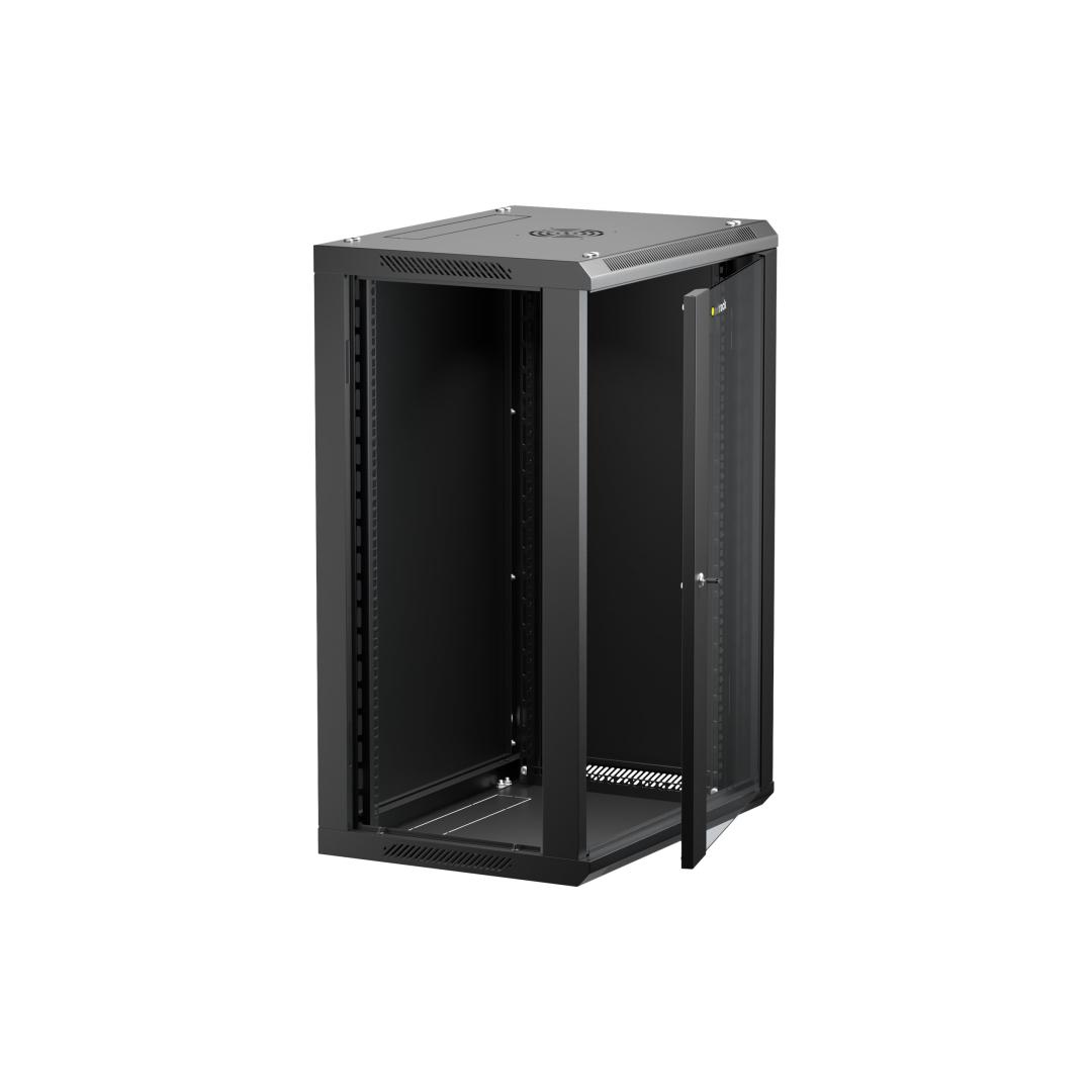 NETRACK 019-180-645-022 Netrack wall/hanging cabinet 19,18U/450 mm,glass door,black,remov. side pan. NETRACK 019-180-645-022 Netrack wall/hanging cabinet 19,18U/450 mm,glass door,black,remov. side pan.