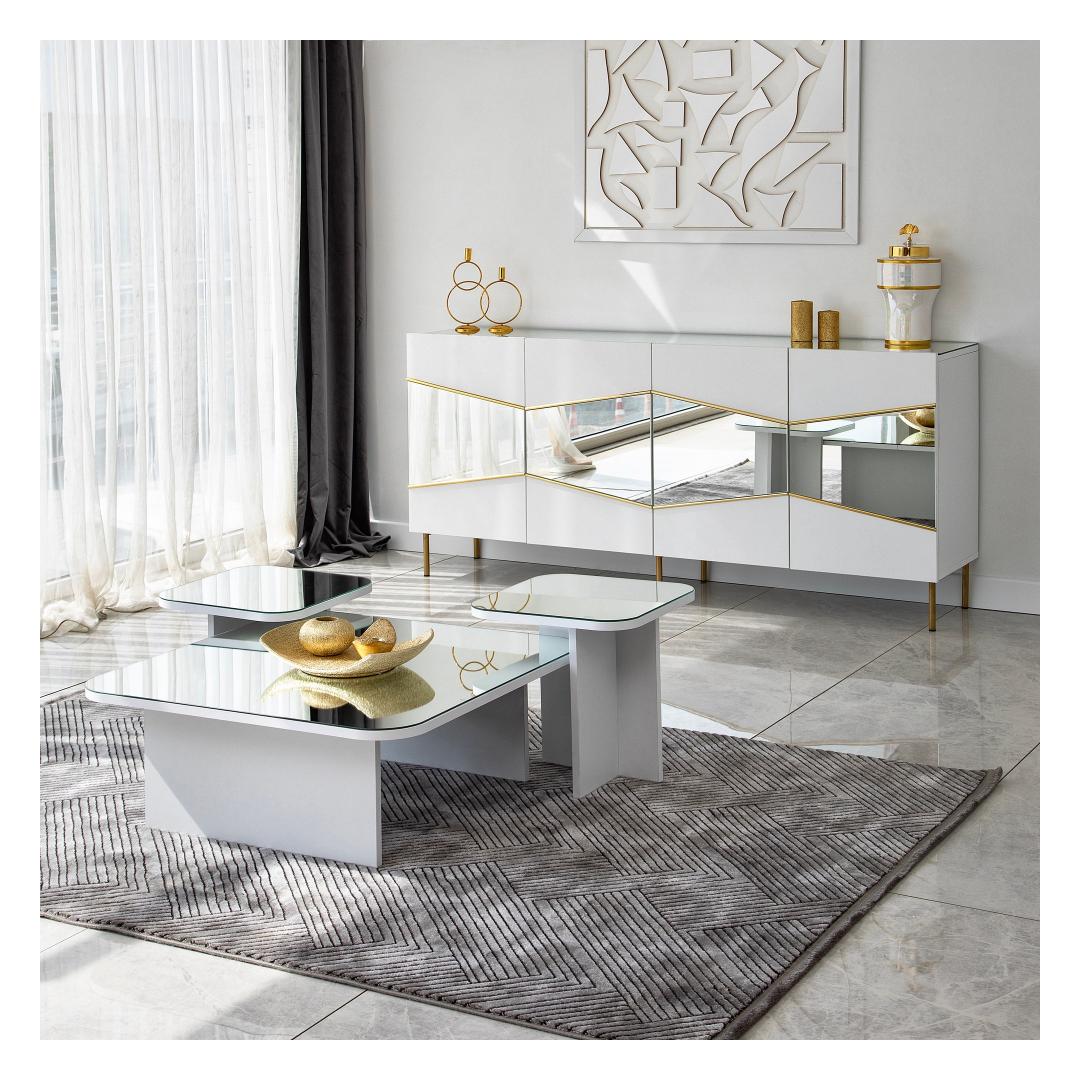 Kõrgendage oma eluruumi uimastava valge ja kuldse konsooligaMuutke oma kodu elegantse ja rafineeritud elegantsi paradiisiks meie suurepärase valge ja kuldse konsooliga. See konsool on valmistatud ülima hoole ja tähelepanelikkusega, et lisada igasse ruumi luksust. Võrratu kvaliteet ja vastupidavusValmistatud 100% melamiiniga kaetud puitlaastplaadist, see konsool on ehitatud kestma. Paksus 18 mm tagab tugevuse ja stabiilsuse, mis võimaldab teil oma kallid esemed kindlalt välja panna.Esteetiline atraktiivsus, mis lummabValge ja kuldse värvi kombinatsioon loob lummava visuaalse mõju, tõstes koheselt teie eluruumi atmosfääri. Selle konsooli elegantse disaini ja selgete joonte tõttu sobib see ideaalselt igasse moodsasse või kaasaegsesse sisekujundusse. Versatiivne ja funktsionaalne180 cm laiuse, 80 cm kõrguse ja 40 cm sügavusega konsool pakub piisavalt ruumi teie esmatarbekaupade hoiustamiseks. Kui soovite esitleda oma lemmikdekoratsiooni või hoida oma igapäevaseid esemeid korrastatuna, siis see konsool on teie jaoks sobiv. Kergesti kokkupandav ja hooldatavSelle konsooli kokkupanek on tänu kasutajasõbralikule disainile ja selgetele juhistele imelihtne. Melamiinkate tagab lihtsa puhastamise ja hoolduse, mis võimaldab teil nautida selle ilu ilma igasuguse vaevata. Tehnilised üksikasjad:Materjal: Materjal: Materjal: Materjal: Materjal: Materjal: Materjal: Materjal: materjal: 100% melamiiniga kaetud puitlaastplaatPaksus: 18mmLaius: 180cmKõrgus: 80cmSügavus: 40cmJala kõrgus: 15cmVärv: valge ja kuldneUuendage oma kodu sisustust valge ja kuldse konsooliga ja kogege täiuslikku segu stiilist, funktsionaalsusest ja vastupidavusest. Tellige kohe ja laske oma eluruumil särada elegantselt. Värv: White Gold