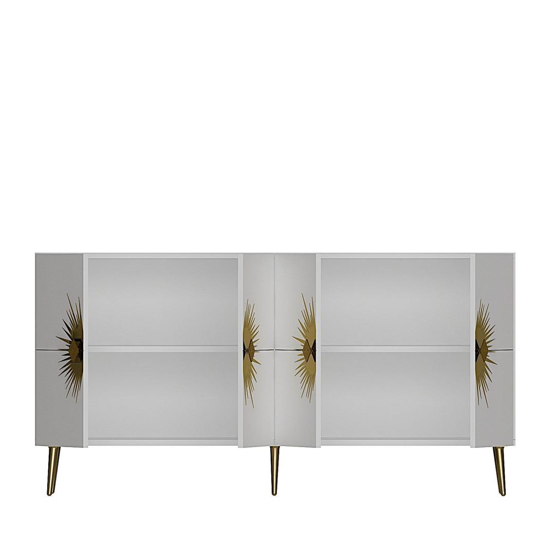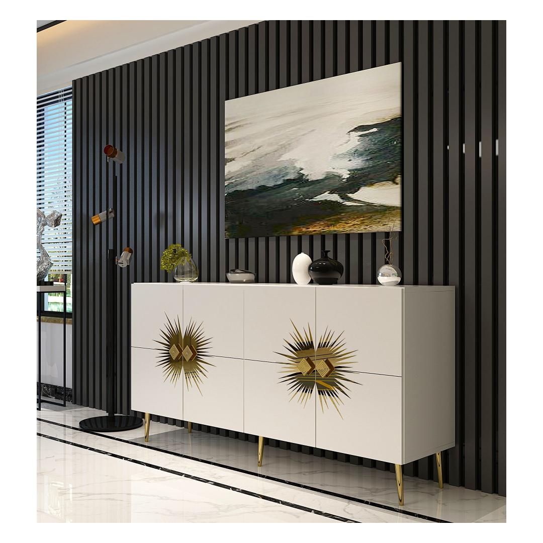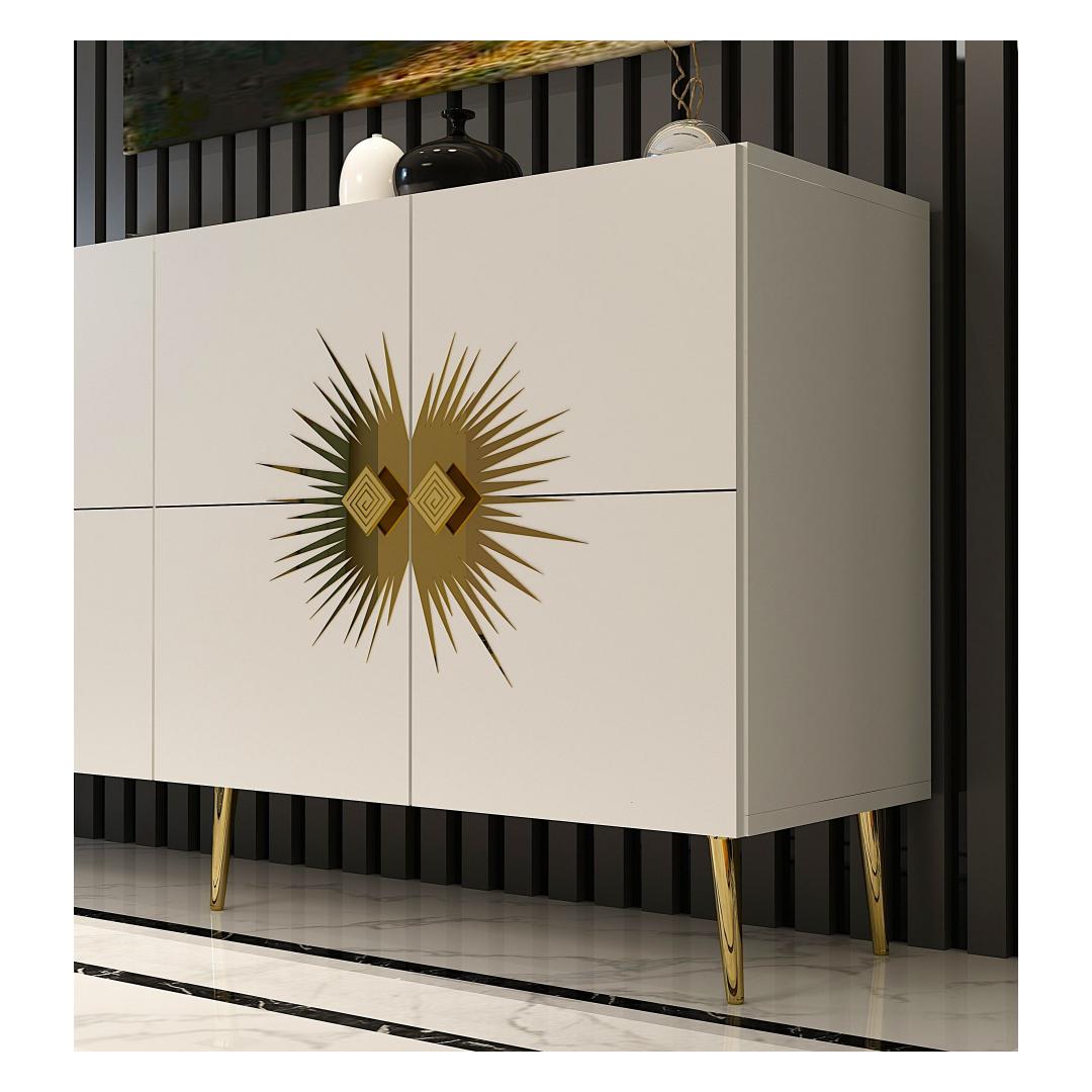 Tutvustame meie uimastavat ja mitmekülgset konsooli, mis on kohustuslik ese igasse moodsasse koju. See konsool ei ole lihtsalt mööblitükk, see on stiili ja elegantsi avaldus. Elegantne disain ja elegantne valge ja kuldne värvikombinatsioon tõstavad koheselt teie kodu mis tahes ruumi, lisades särtsu luksust ja glamuuri. Tõstke oma ruumi ülesMuutke oma elutuba, koridor või esikussepääs selle kauni konsooliga. Selle puhtad jooned ja kaasaegne disain muudavad selle ideaalseks täienduseks igale ruumile, olgu see siis minimalistliku või glamuursema esteetika poole püüdlev. Funktsionaalne ja stiilneTänu arvukatele riiulitele hoiustamiseks ja väljapanekuks on see konsool nii praktiline kui ka stiilne. Hoidke oma raamatuid, dekoratiivseid esemeid või perefotosid korralikult organiseeritult ja kaunilt esitletud. 100% melamiiniga kaetud puitlaastplaat tagab vastupidavuse ja pikaealisuse, nii et saate sellest esemest rõõmu tunda aastaid. Lihtsalt paigaldatavSeda konsooli saab hõlpsasti seinale kinnitada, et suurendada stabiilsust ja turvalisust. Kaasasolevad juhised muudavad kokkupaneku imelihtne, nii et saate oma uut konsooli kohe nautima hakata. Tehnilised üksikasjad:Materjal: 100% melamiiniga kaetud puitlaastplaatLaius: 150 cmKõrgus: 75 cmSügavus: 35 cmRiiuli laius: 72 cmRiiuli kõrgus: 27 cmJala kõrgus: 15 cmVärv: valge ja kuldne Värv: White Gold