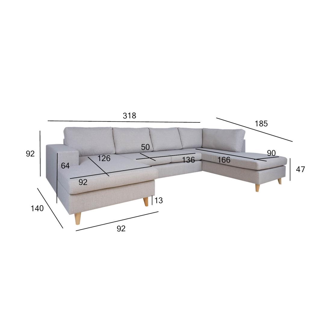 Nurgadiivan HARALD parem nurk, beež. Suur U-kujuline nurgadiivan võlub oma selge ja neutraalse disainiga ning sobitub suurepäraselt erinevas stiilis sisekujundusega. Mõnusate pehmete patjadega diivan on parim koht lõõgastumiseks ja mahutab vajadusel palju istujaid. Diivani karkass on valmistatud kasevineerist ja täispuidust. Istumismugavuse tagab sik-sak vedrustus. Kõik istmepadjad on lahtised. Istmepatjade sees on vastupidav HR plaatporoloon, mis on kaetud pehme polüesterkiuga. Lahtised seljatoepadjad on täidetud purustatud porolooniga. Istme- ja seljatoepatjade katted on eemaldatavad ja pestavad. Diivani korpus ja padjad on kaetud kvaliteetse mööblikangaga, Martindale'i väärtus 90 000 - 100 000. Diivani üldmõõdud on 318x140/185xH92cm. Pikem nurk asub eestvaates paremal pool. Diivani kõrgus raami ääreni 73cm. Istme kõrgus 47cm. Istme sügavus 50cm. Istmepatjade mõõdud on 90/70x167xH15cm, 93/68x126xH15cm. Keskmiste istmepatjade mõõdud on 70x65xH15cm/2tk. Seljatoepatjade mõõdud on 70x48x18cm/3tk, 97/83x48x18cm/1tk ja 80/68x48xH18cm/1tk. Diivanil on puidust jalad. Jalgade kõrgus maast 13cm. Diivan on toodetud Eestis. Nurgadiivan HARALD parem nurk, beež. Suur U-kujuline nurgadiivan võlub oma selge ja neutraalse disainiga ning sobitub suurepäraselt erinevas stiilis sisekujundusega. Mõnusate pehmete patjadega diivan on parim koht lõõgastumiseks ja mahutab vajadusel palju istujaid. Diivani karkass on valmistatud kasevineerist ja täispuidust. Istumismugavuse tagab sik-sak vedrustus. Kõik istmepadjad on lahtised. Istmepatjade sees on vastupidav HR plaatporoloon, mis on kaetud pehme polüesterkiuga. Lahtised seljatoepadjad on täidetud purustatud porolooniga. Istme- ja seljatoepatjade katted on eemaldatavad ja pestavad. Diivani korpus ja padjad on kaetud kvaliteetse mööblikangaga, Martindale'i väärtus 90 000 - 100 000. Diivani üldmõõdud on 318x140/185xH92cm. Pikem nurk asub eestvaates paremal pool. Diivani kõrgus raami ääreni 73cm. Istme kõrgus 47cm. Istme sügavus 50cm. Istmepatjade mõõdud on 90/70x167xH15cm, 93/68x126xH15cm. Keskmiste istmepatjade mõõdud on 70x65xH15cm/2tk. Seljatoepatjade mõõdud on 70x48x18cm/3tk, 97/83x48x18cm/1tk ja 80/68x48xH18cm/1tk. Diivanil on puidust jalad. Jalgade kõrgus maast 13cm. Diivan on toodetud Eestis.